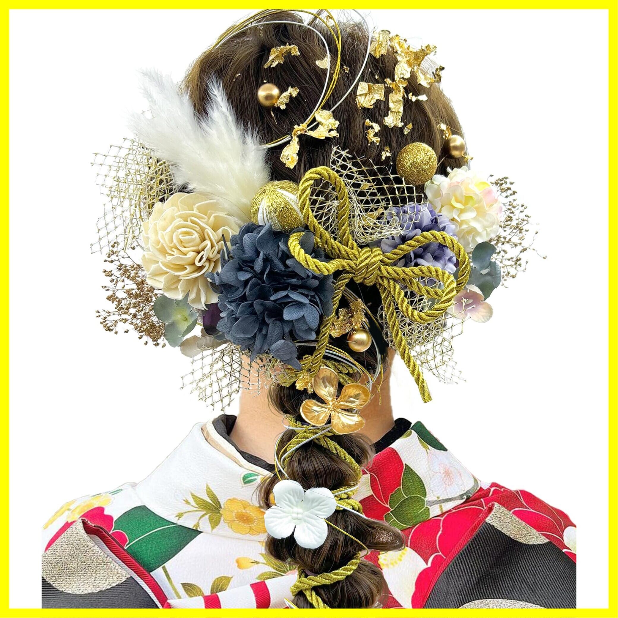 [JZOON] 髪飾り 10色 ドライフラワー 造花飾り 水引 紐 ヘアーアクセサリー 和玉 かすみ草 金箔 人気 和服 着物 振袖 袴 花 浴衣 成人式 七五三 結納 卒業式 入学式 結婚式 発表会 TC001 | hananoki