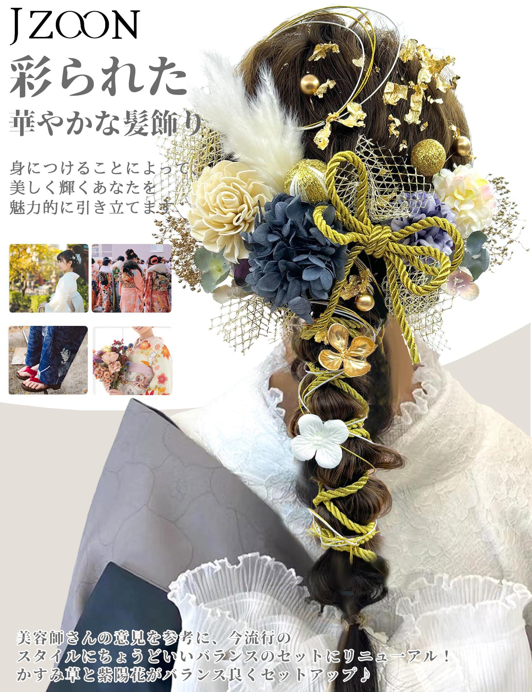 [JZOON] 髪飾り 10色 ドライフラワー 造花飾り 水引 紐 ヘアーアクセサリー 和玉 かすみ草 金箔 人気 和服 着物 振袖 袴 花 浴衣 成人式 七五三 結納 卒業式 入学式 結婚式 発表会 TC001