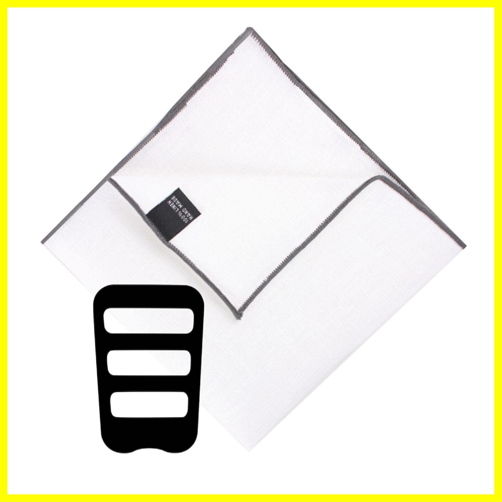[Beirou] ポケットチーフ リネン 麻 100% 縁取り ホワイト 無地 ハンカチ メンズ 紳士 おしゃれ プレゼント 結婚式 フォーマル ビジネス カジュアル 型崩れ 防止 【ホルダーと折り方ガイド 付き】