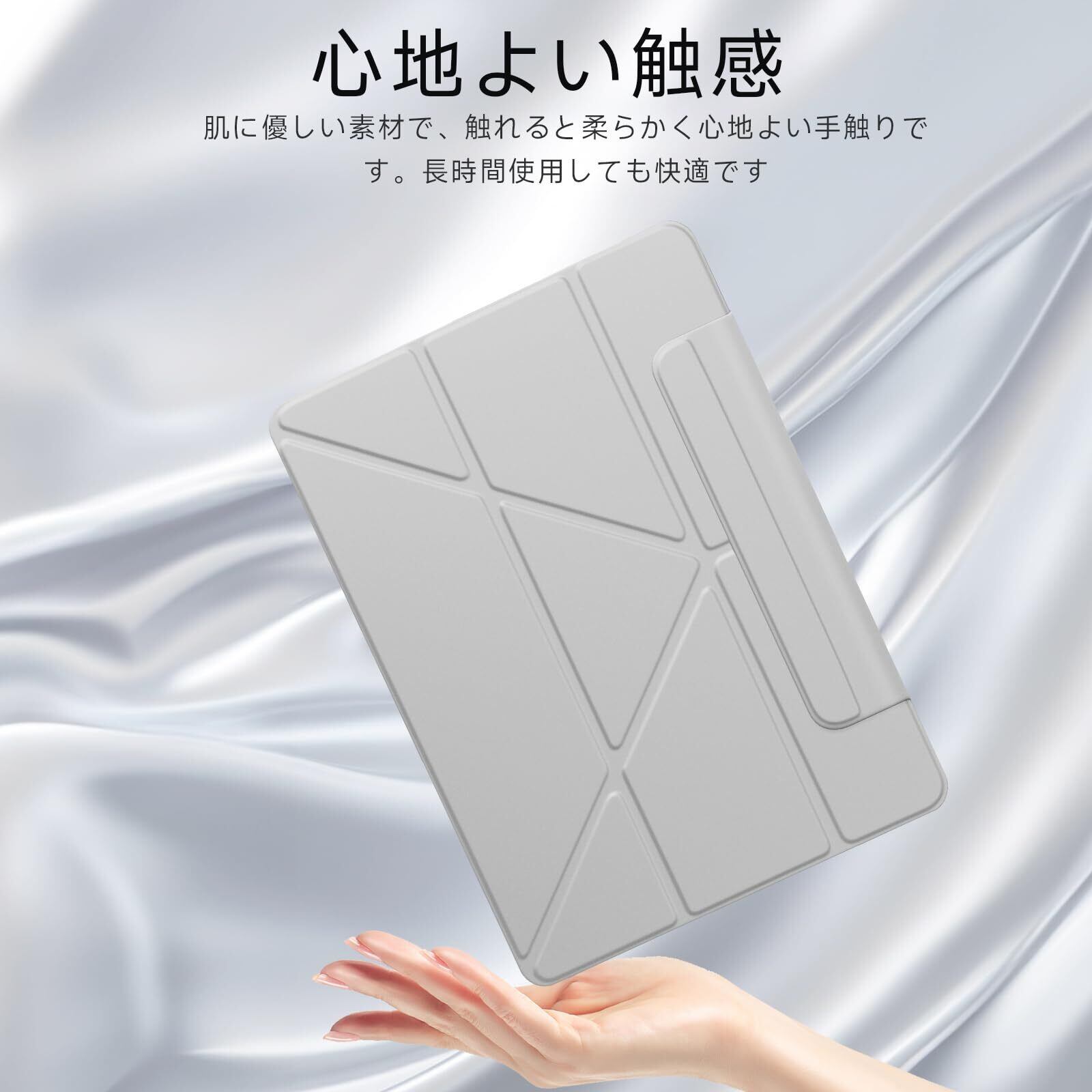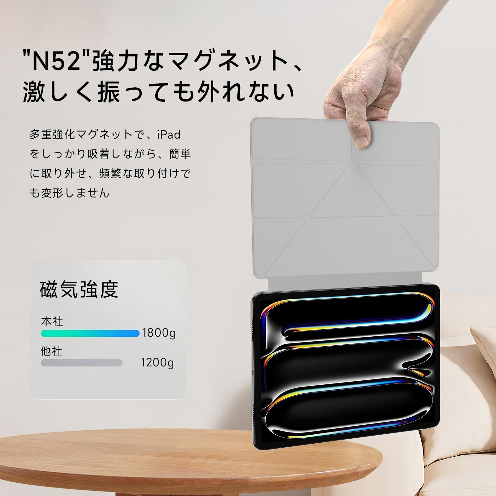 【強力マグネット吸着で取り付け簡単】マグネット式で、ケースの装着がスムーズに行えます。iPad本来の薄さを保ちながら、ケース自体も非常に軽量。強力な磁力でしっかりと固定され、ずれ落ちや剥がれの心配もありません。