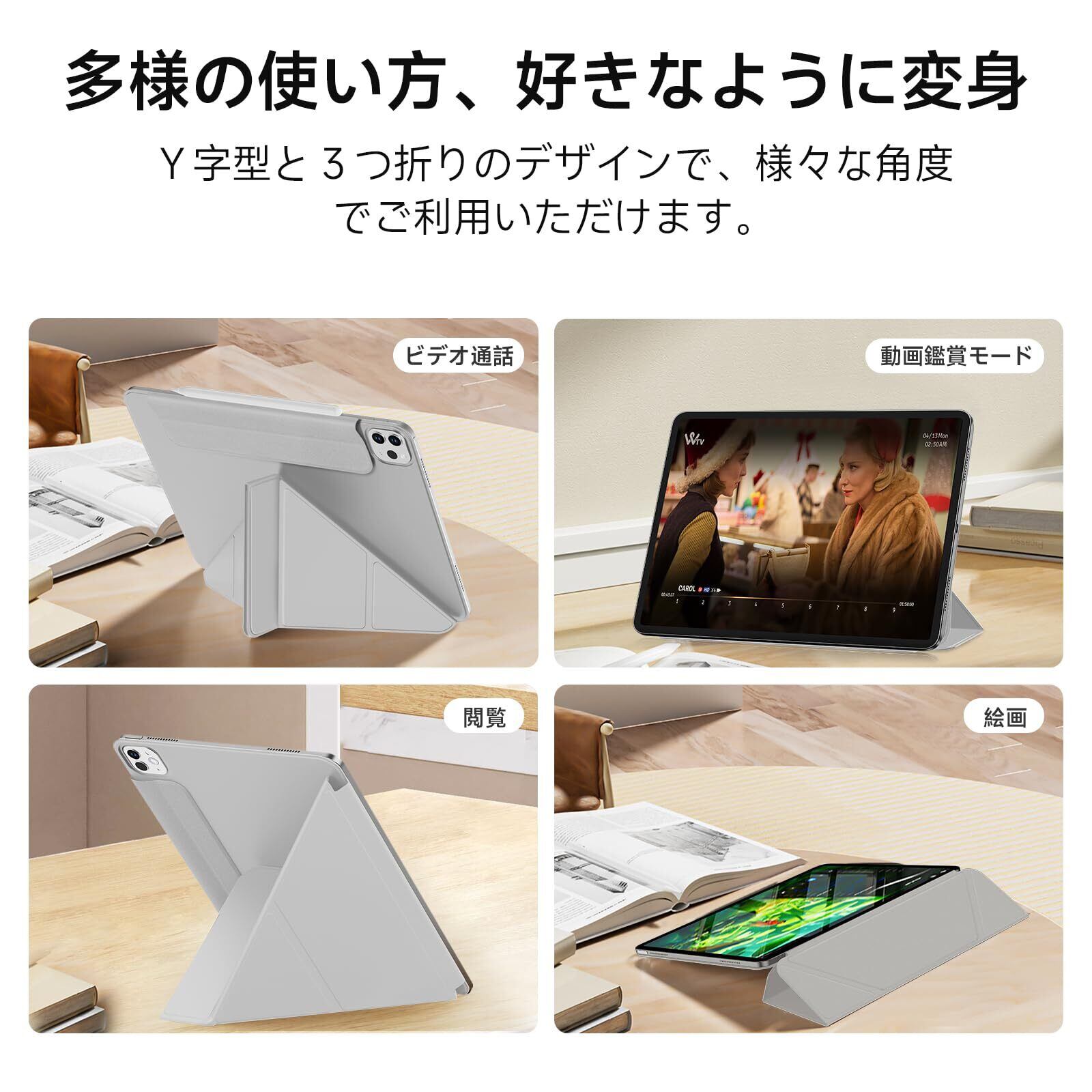 SANDUODD iPad Pro 11インチ ケース 第4/3/2世代(2022/2021/2020)に適用 強力マグネット吸着式 横置&縦置 角度調整可能 Y折スタンド Pencilホルダー付き iPad Pro ケース 11インチ 軽量 オートスリープ/ウェイク対応 (ライトグレー Pro 11インチ(2022/2021/2020))