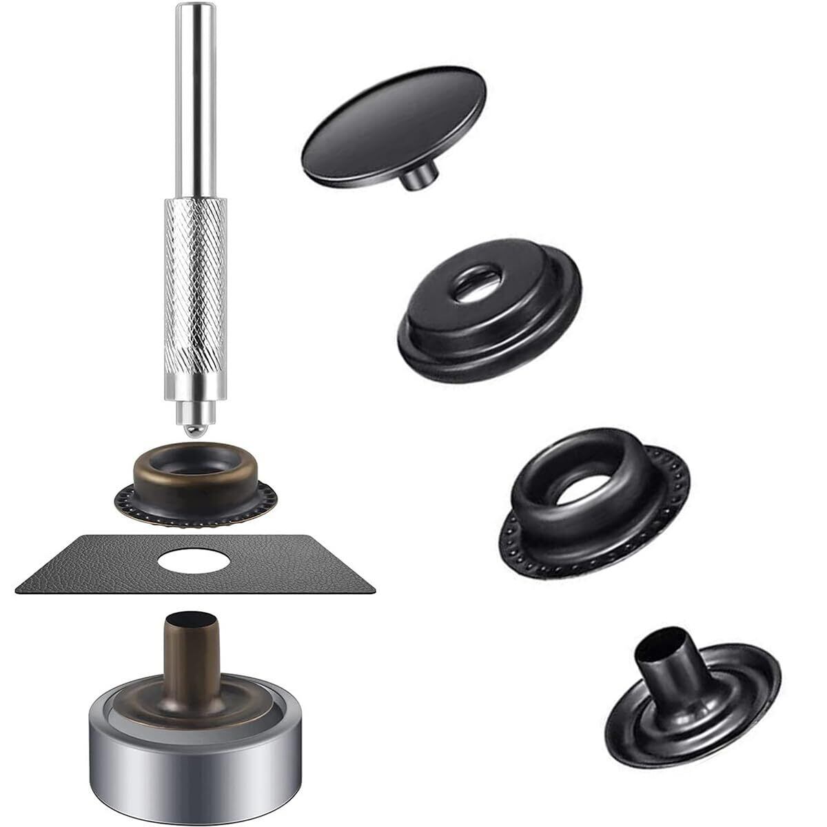 サムコス ジャンパーホック ステンレス鋼メタルボタン 黒ニッケル 15mm 18セット レザークラフト 工具 4種類 手芸/家庭/裁縫用 DIY 手作り ハンドメイド (収納ケース付き)