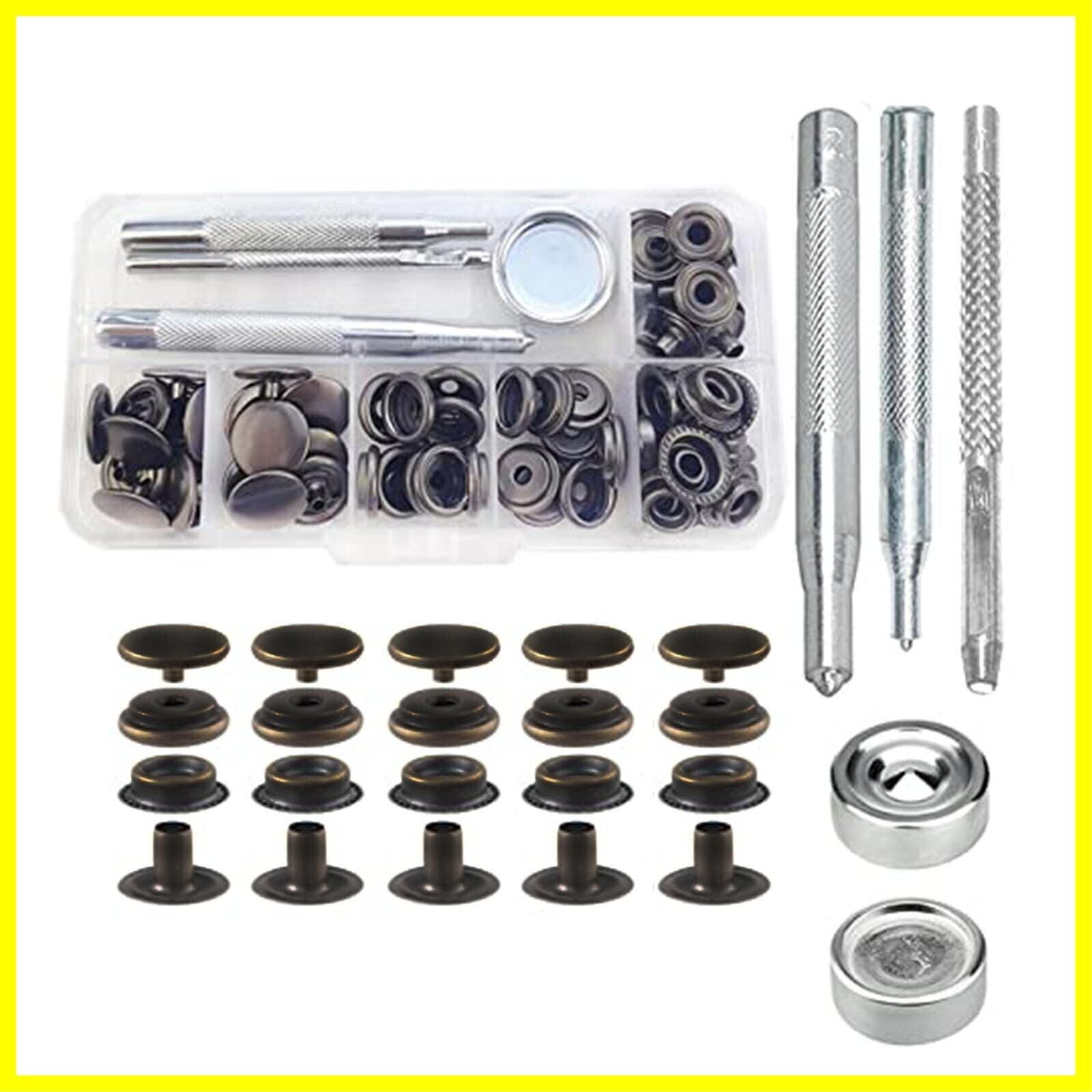 サムコス ジャンパーホック ステンレス鋼メタルボタン 黒ニッケル 15mm 18セット レザークラフト 工具 4種類 手芸/家庭/裁縫用 DIY 手作り ハンドメイド (収納ケース付き) | hananoki