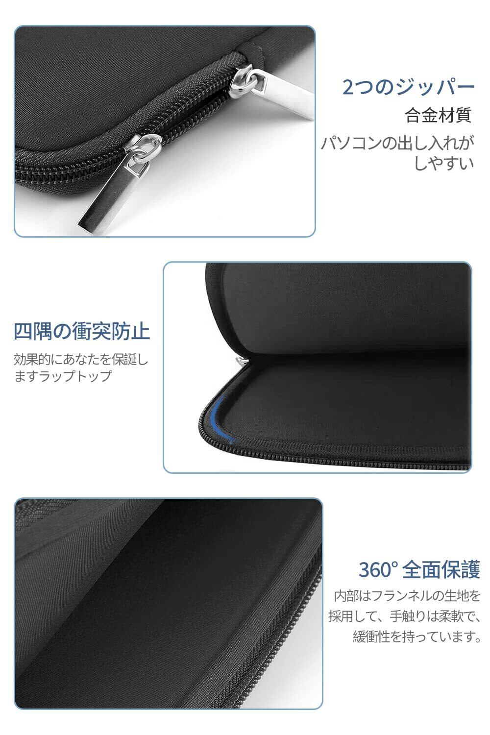 2.【360° 全面保護】 PCインナーケースの外側傷に強い素材をはポリエステルフォーム生地で作られ、手触りは柔軟で、緩衝性を持っています。衝撃を吸収して、ラップトップが傷つかないように全面保護します。防水もできるし湿気も防げる 。