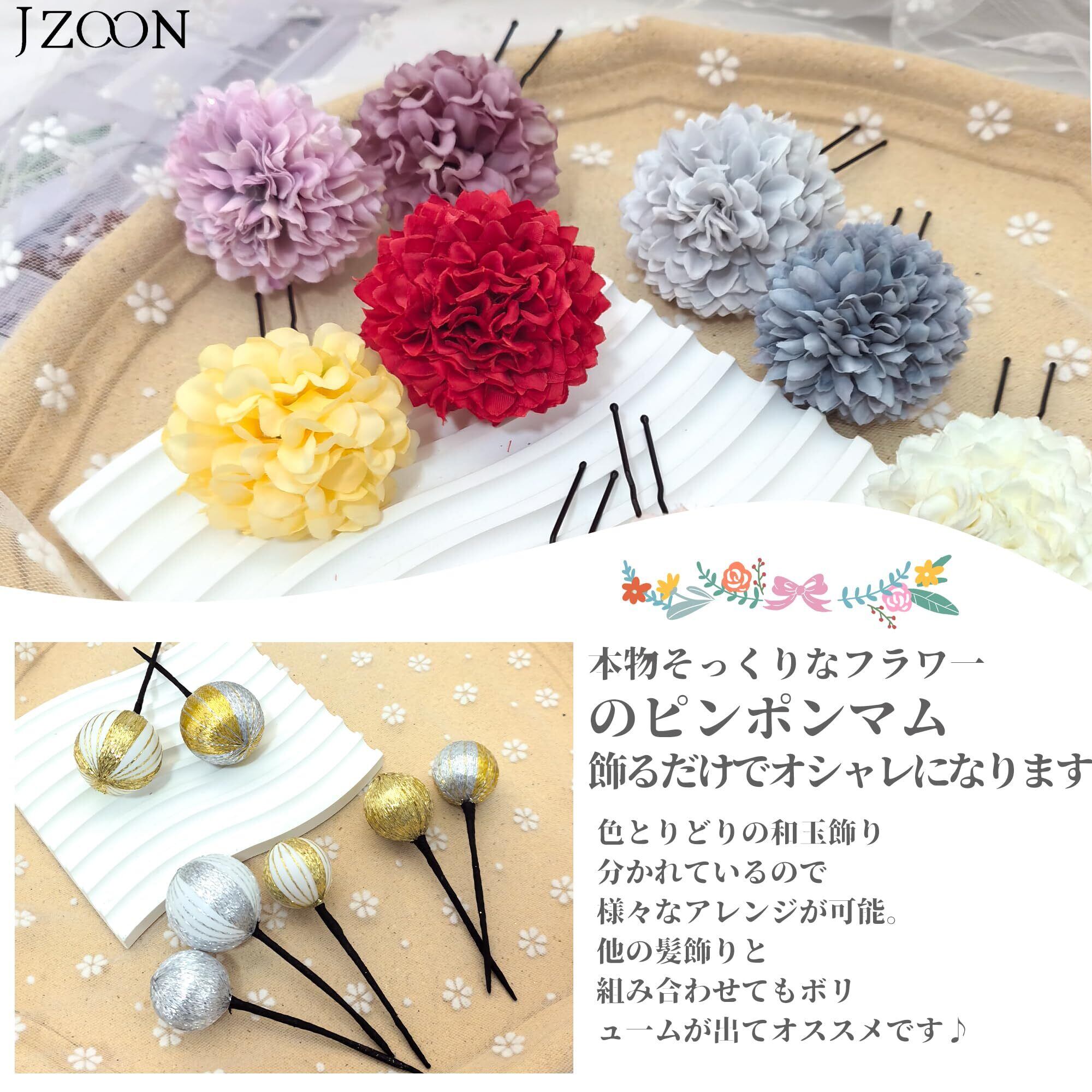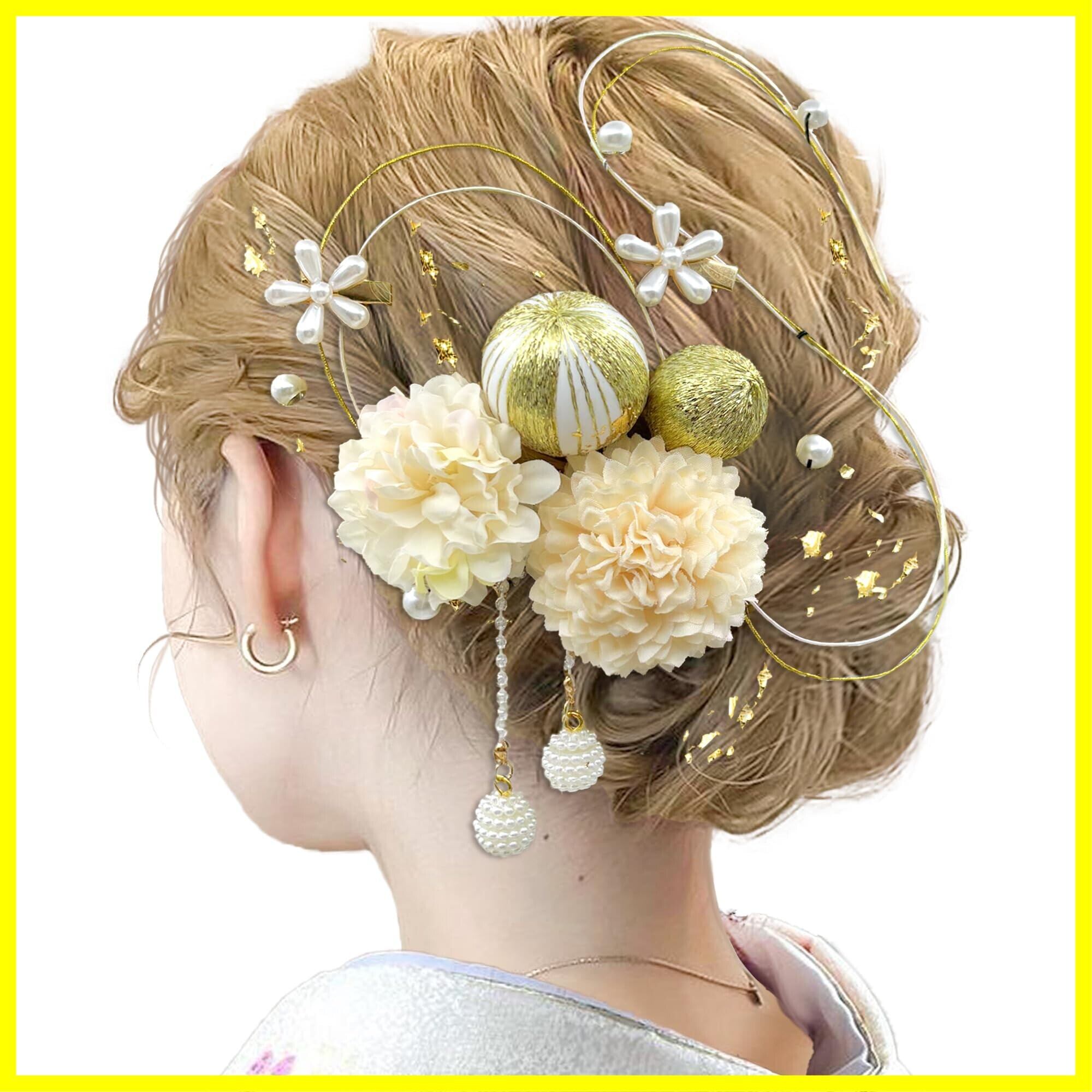 【上品な髪飾りセット】ピンポンマム、デージー、パール、金箔、水引、和玉など子どもから大人まで使え、いくつになっても人気がある髪飾りセット。多種の色で構成され、色鮮やかなイメージは活発で楽しい気分を与えます。