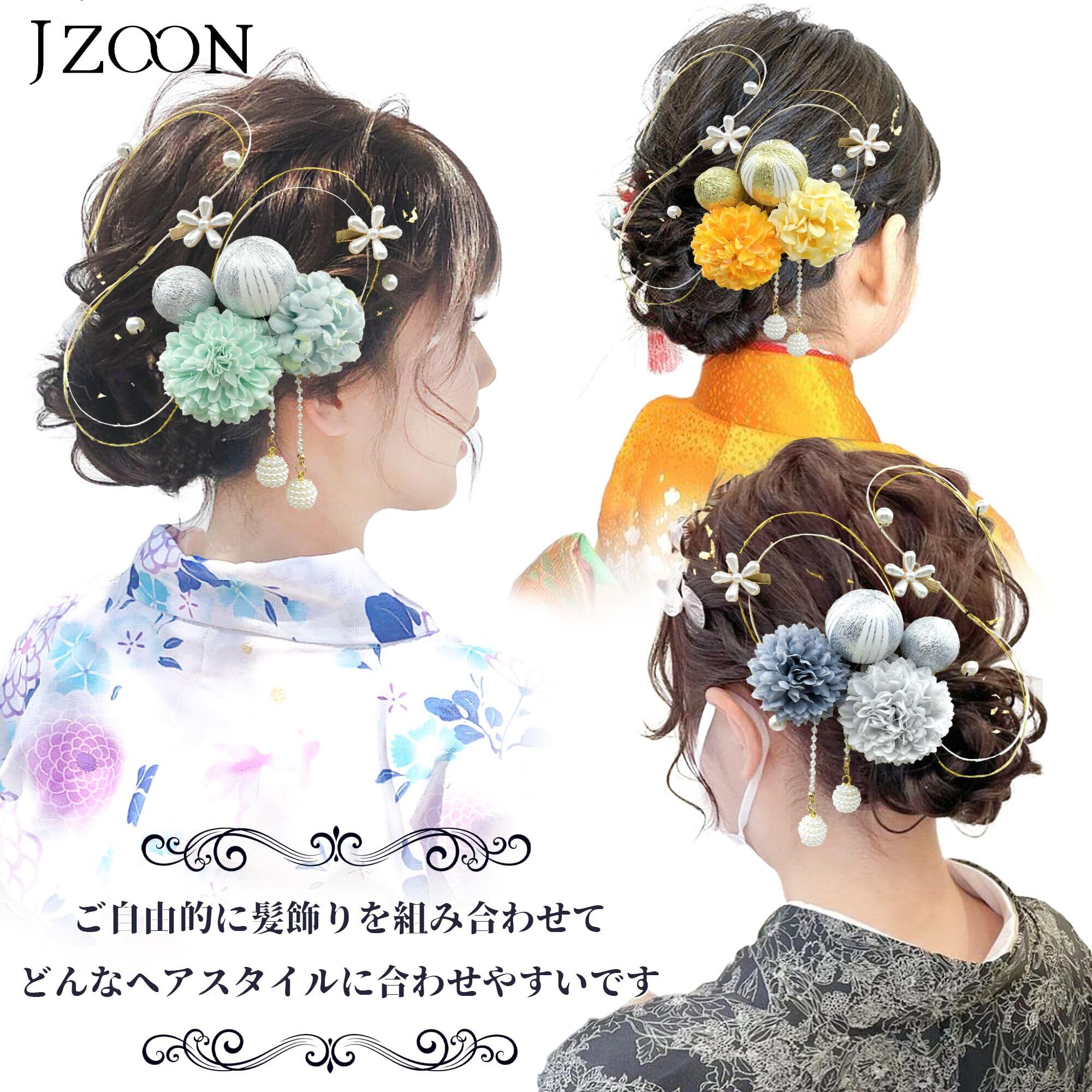 【JZOON】浴衣 髪飾り 15点セット 成人式 卒業式 振袖 和装 着物 袴 ドライフラワー 金箔 和玉 水引き パール 全9色 F1101