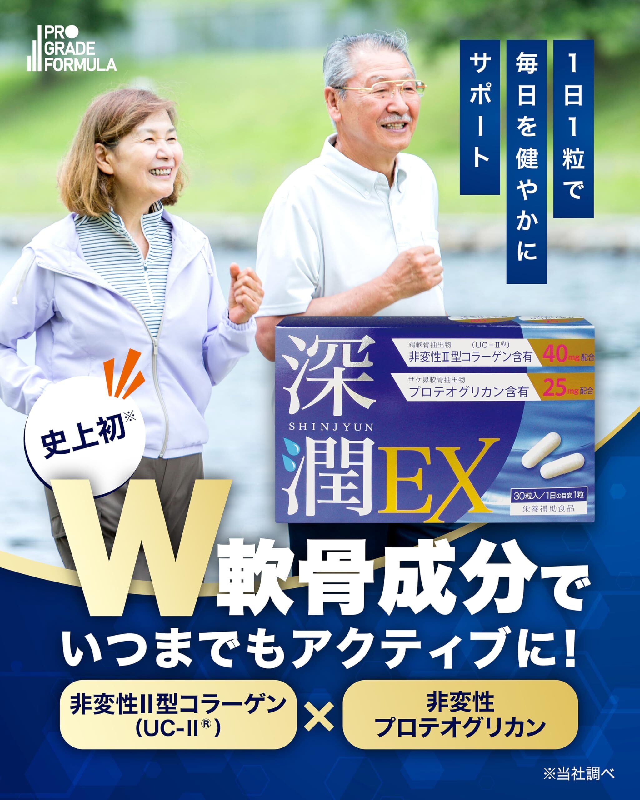 【軟骨成分2種】深潤EX プロテオグリカン(750mg/30日)非変性 Ⅱ型 コラーゲン(1200mg/30日)高配合 膝 関節 サプリ 1日1粒 30粒入 国内製造 PRO GRADE FORMULA