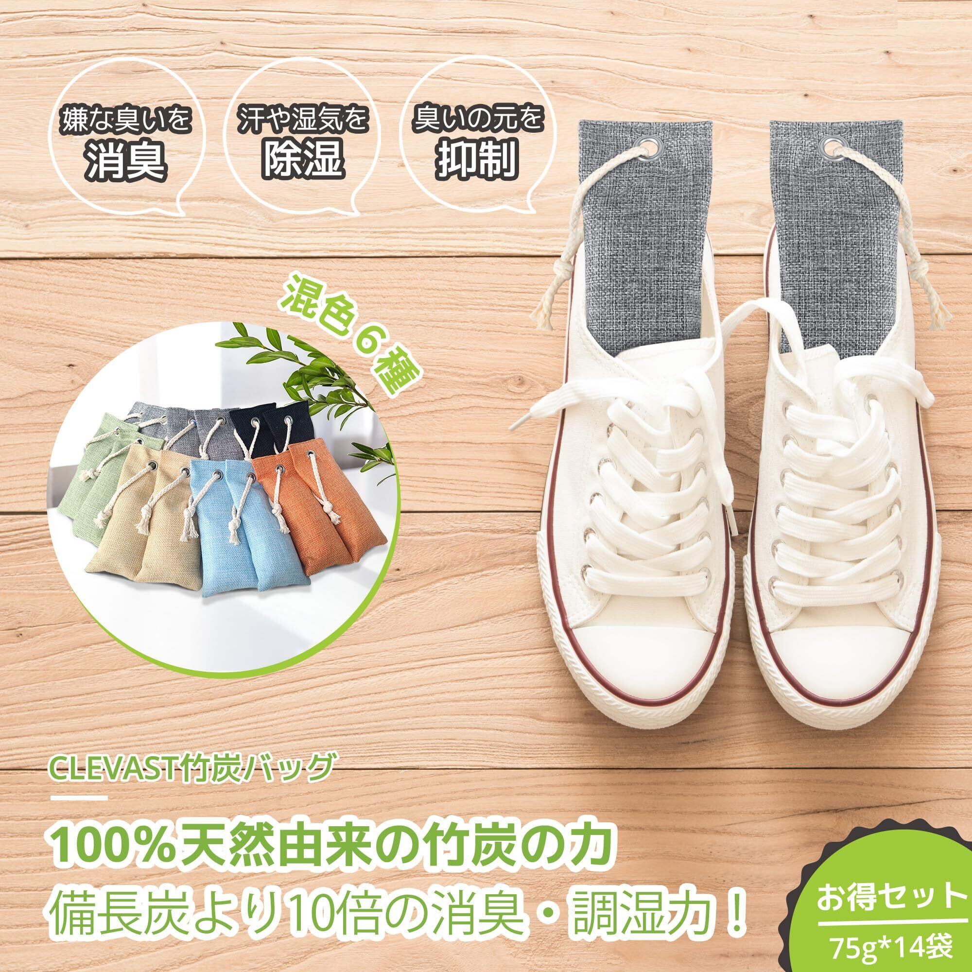 CLEVAST 靴 消臭 除湿剤 乾燥剤 消臭剤 湿気取り 車 靴箱 下駄箱 クローゼット パントリー 冷蔵庫 革靴 ブーツ 玄関 部屋 インテリア 脱臭 匂い対策 調湿 防カビ 竹炭バッグ (マルチカラー)
