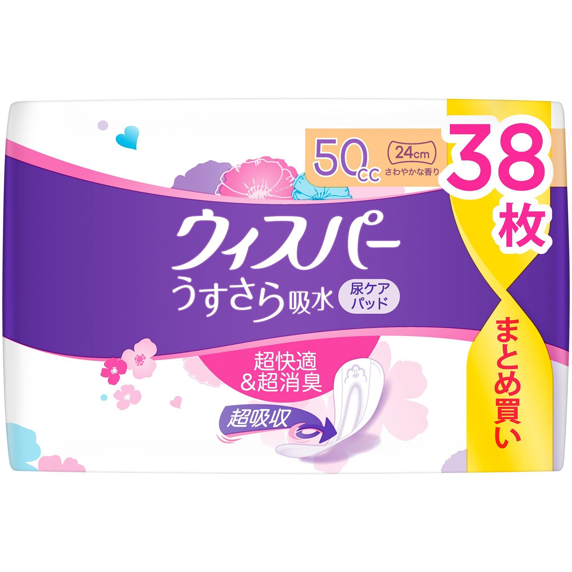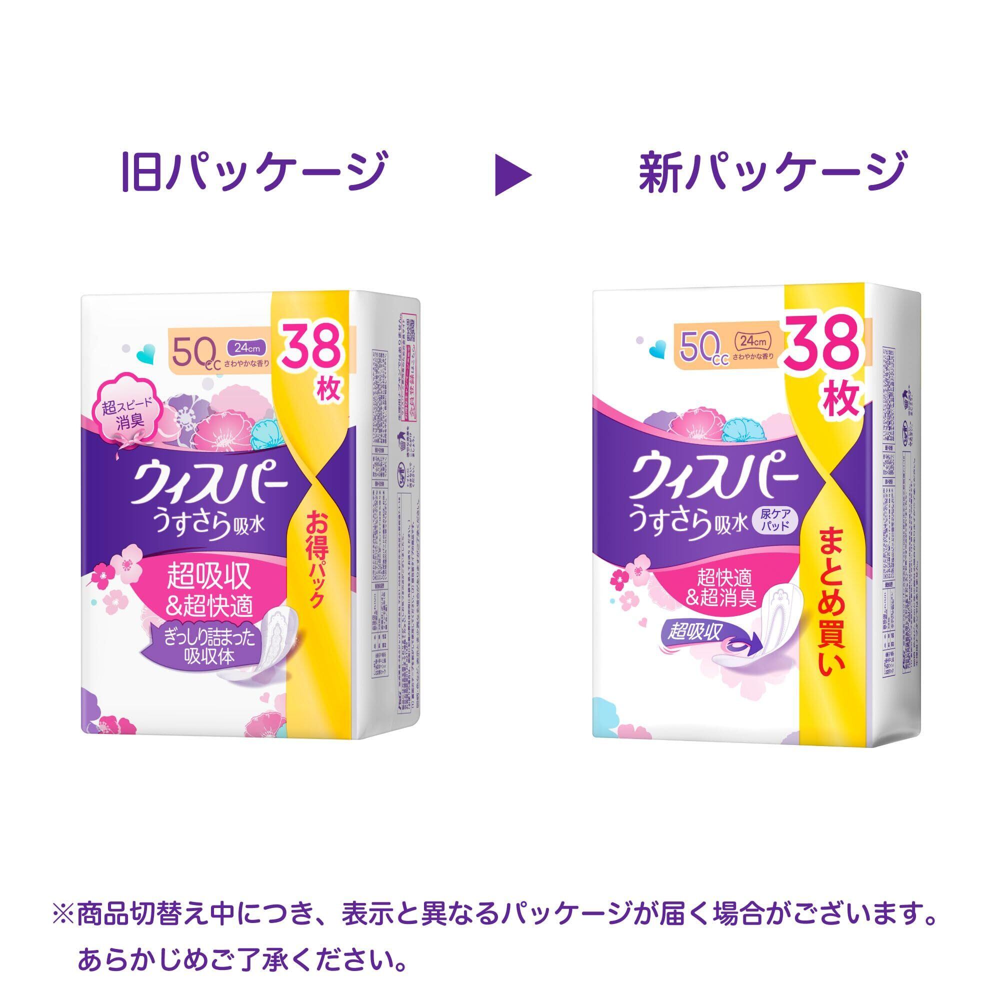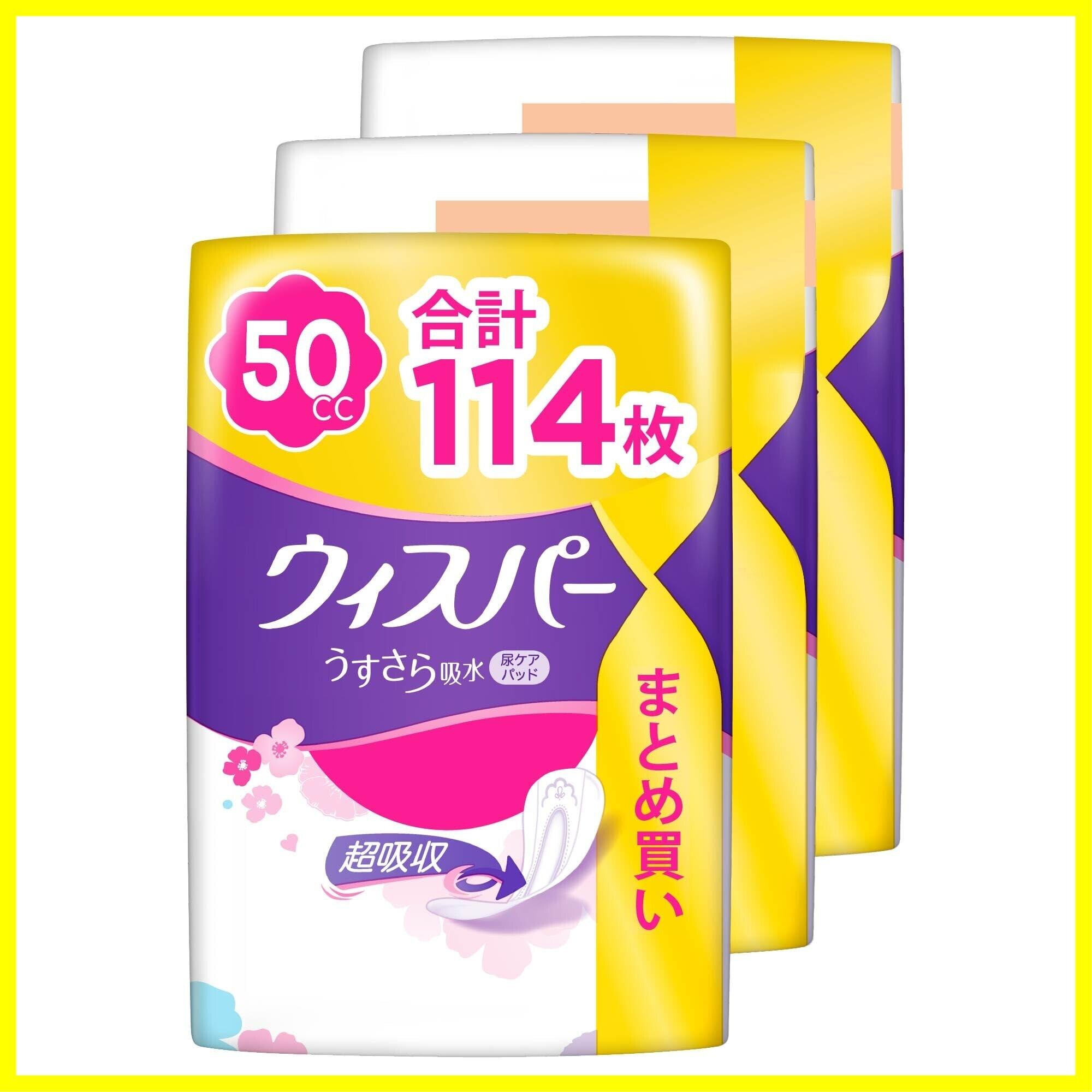 [まとめ買い・大容量]ウィスパー うすさら吸水 50cc 114枚 (38枚×3パック) (吸水ナプキン 尿漏れパッド 女性用)【少量用】
