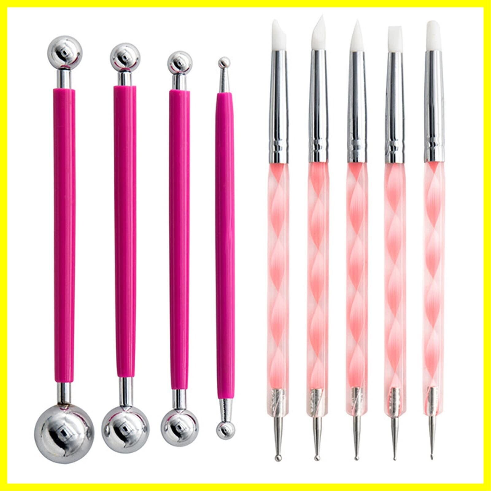 DanYun 9本セット 18タイプ 陶芸 粘土 道具 細工棒 クレイ ツール 丸 ヘラ シリコン筆 シリコン筆 粘土彫刻ツール ネイルアート 粘土細工 お手入れ用 クロス ピンク