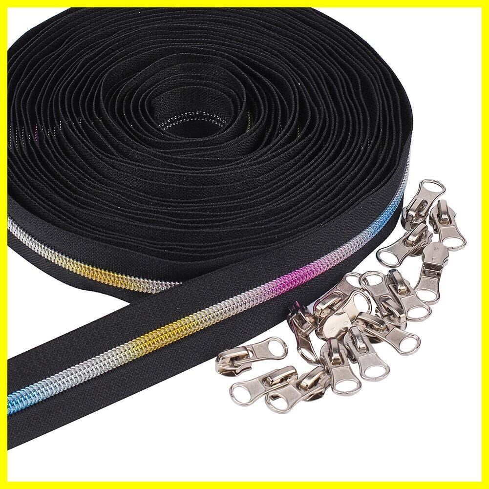 BENECREAT#5 長さ9mカラフルナイロンファスナーテープ 30個引手付き スライダー交換 ジッパー修理 服装 バッグ ジッパー交換 修理キット 裁縫