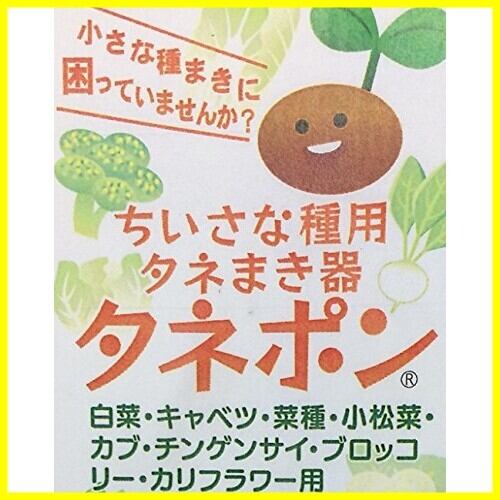タネポンは指でつまみにくい小さな種まきのために作られた器具です。種の落ちる穴の大きさが約2ミリあります。2ミリより小さくて、1.6ミリぐらいまでの球形の種まき用の器具です。キャベツ、白菜、菜類、小松菜、カブ、チンゲンサイ、ブロッコリー、カリフラワーなどの種まきに利用できます。(ごみやほこりなどは、分解して、取り除いてください。種の形状や大きさなどによっては合わない場合があります。 1粒用、2粒用の部品が入っています。本体のネジをゆるめて交換してご使用下さい。