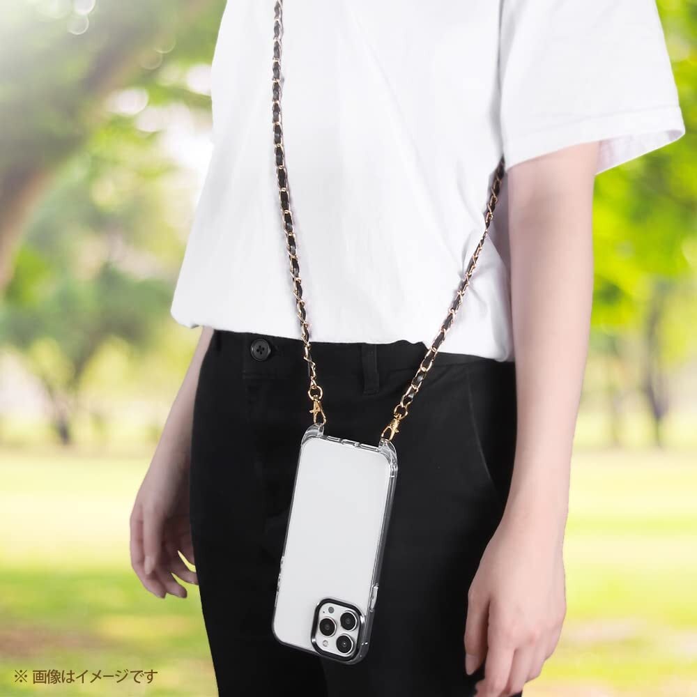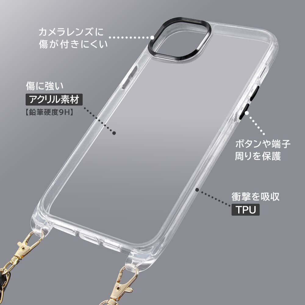 iPhone 14 Plus ケース クリア ハイブリッド ケース ショルダー ストラップ 付き スマホ ショルダー クリア ケース x ブラック ストラップ