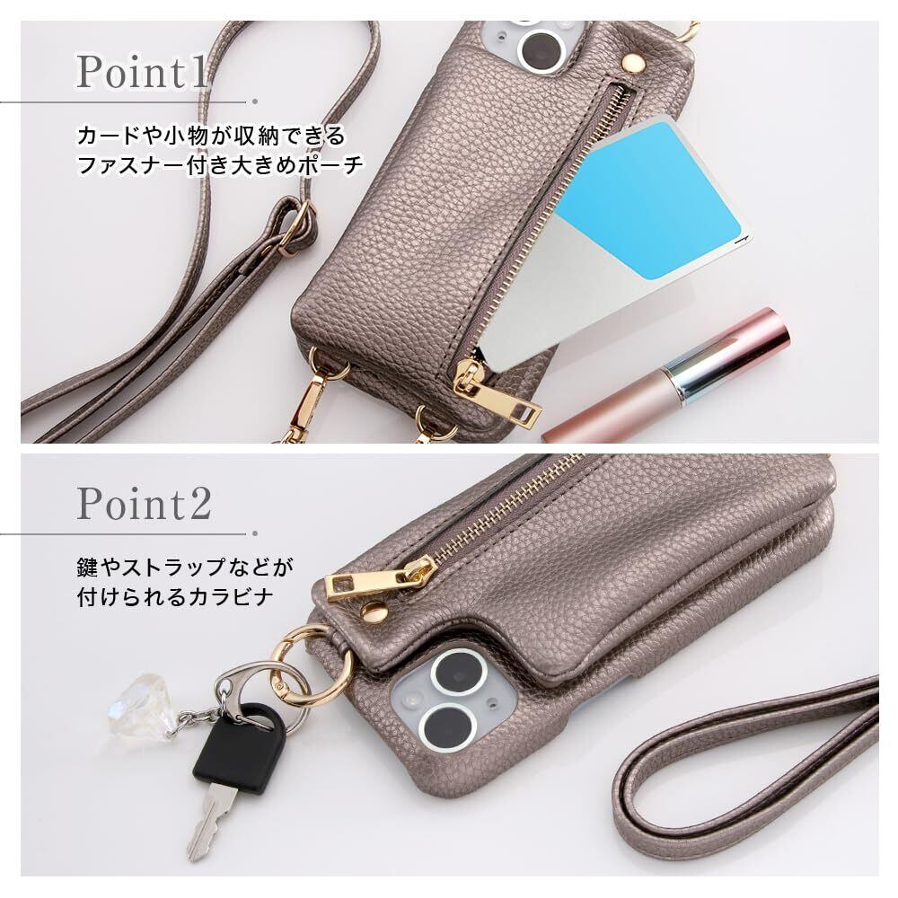 iPhone 15 Plus ケース オープンレザーケース ショルダーストラップ ポーチ付き m1n1 ブロンズ