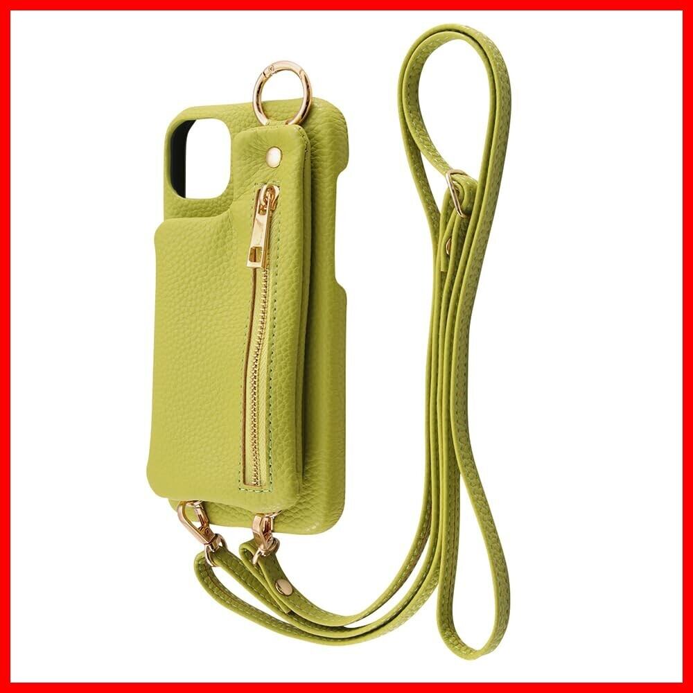 iPhone 15 Plus ケース オープンレザーケース ショルダーストラップ ポーチ付き m1n1 ピスタチオ