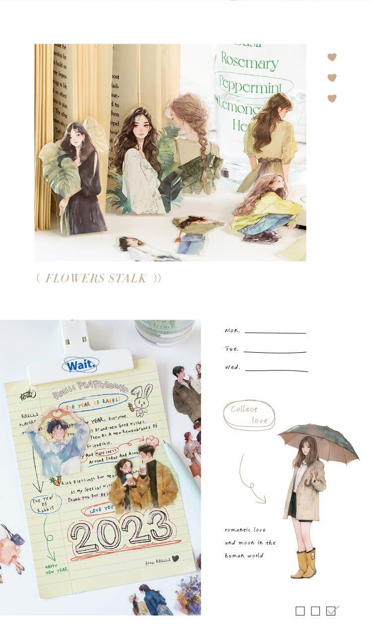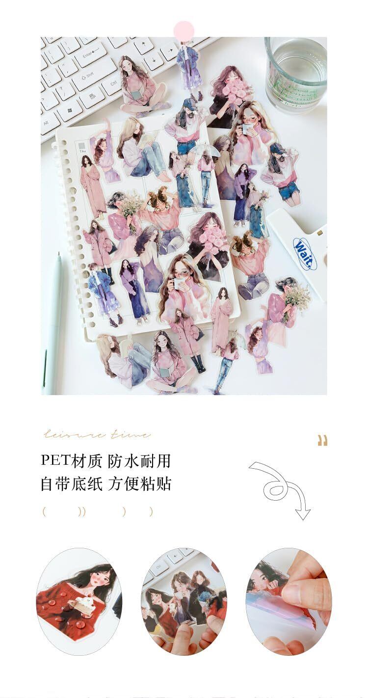 60枚 シール フレークシール コラージュ 素材 ペーパー 素材紙 レースユートピアステッカーレトロファッショナブルな女の子たち海外韓国 シール帳 ,メモ用紙ノート素材、日記装飾用品 (weimanchunshan)