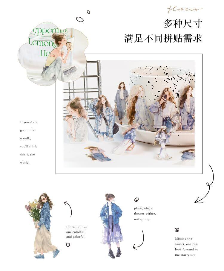 60枚 シール フレークシール コラージュ 素材 ペーパー 素材紙 レースユートピアステッカーレトロファッショナブルな女の子たち海外韓国 シール帳 ,メモ用紙ノート素材、日記装飾用品 (weimanchunshan) | hananoki