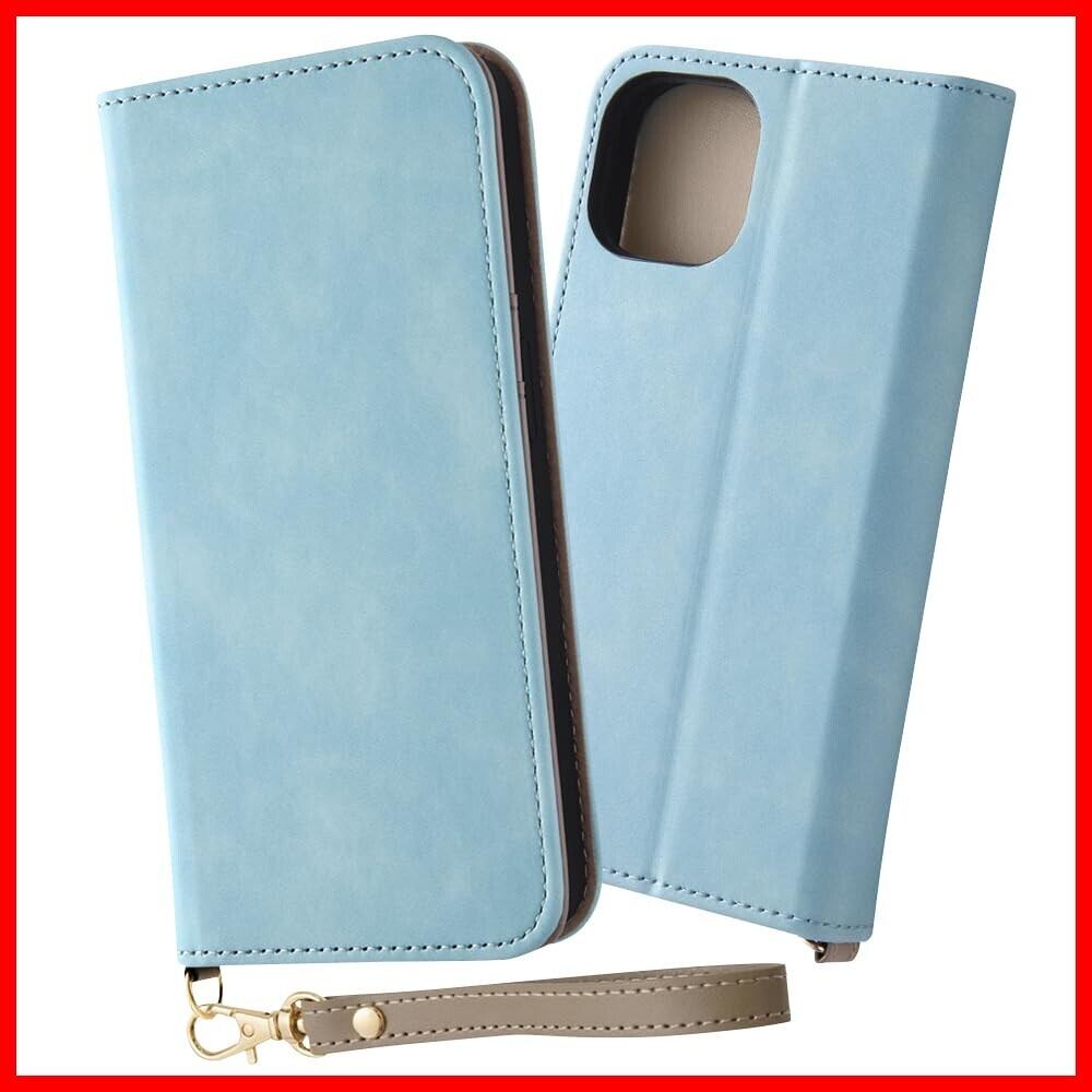 iPhone15 ケース 手帳型 ハンドストラップ付き マグネット無し スタンド機能 カード3枚収納 アイフォン 15 カバー/ブルー