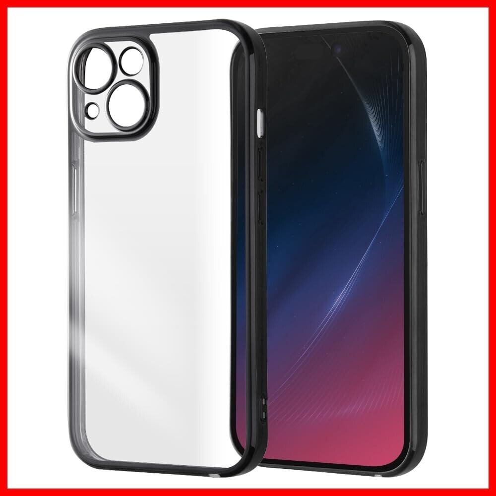iPhone15 ケース クリア 精密設計 カメラ保護 耐衝撃 メッキ加工 ストラップホール 付き アイフォン 15 カバー/ブラック