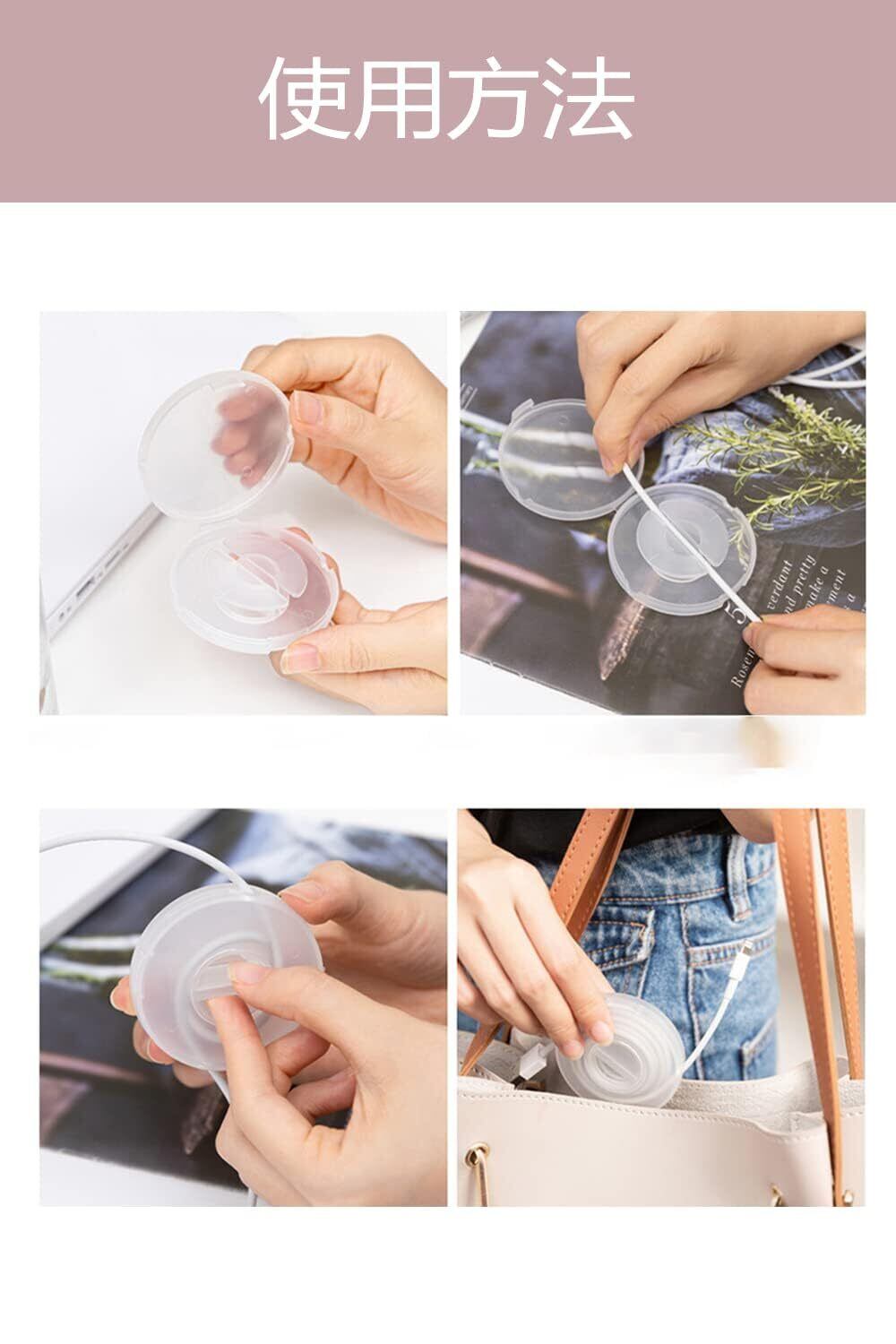 ケーブル収納ケース 防止ケーブル ケーブルホルダー スマホスタンド コード りもつれ まとめる 携帯スタンド イヤホン ケーブル 収納 巻き取り 持ち運びに便利 ホルダー 多機能 軽量 小型 白 4個パック