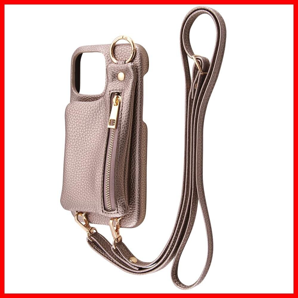 iPhone 15 Pro Max ケース オープンレザーケース ショルダーストラップ ポーチ付き m1n1 ブロンズ