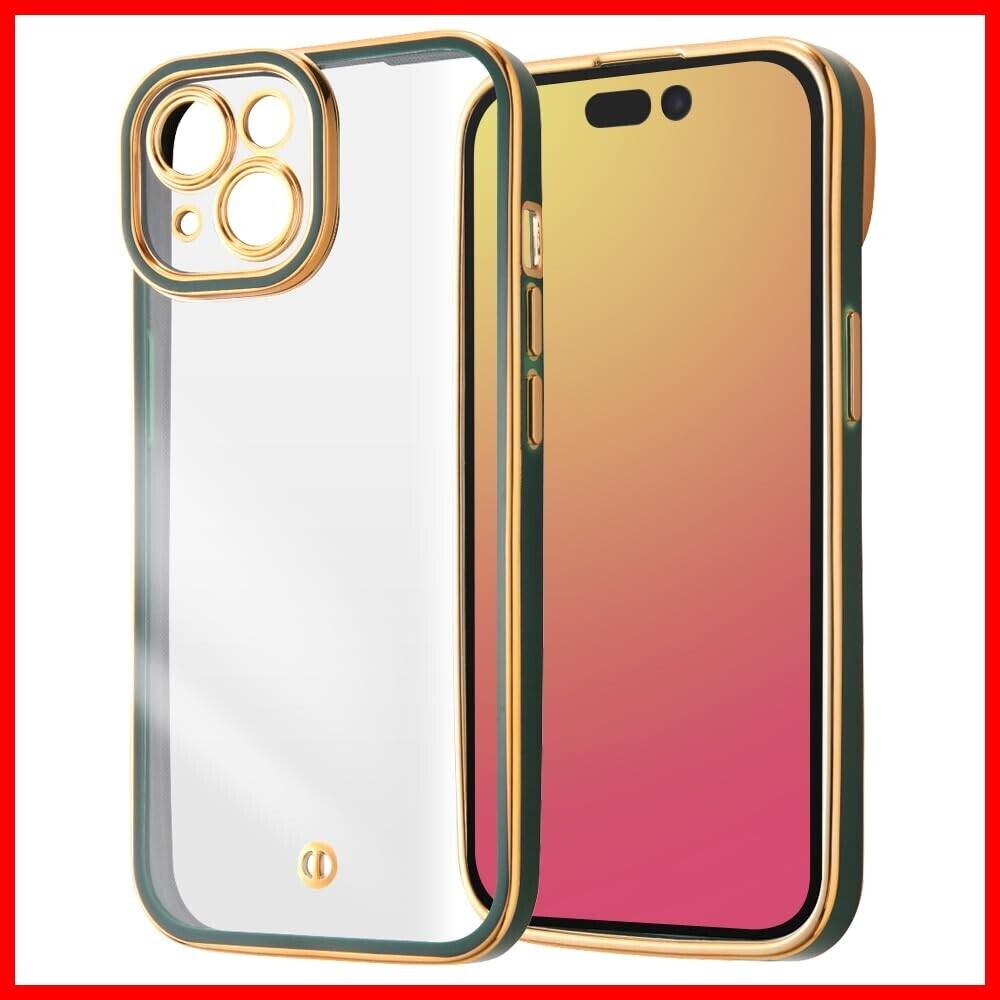 iPhone15 ケース クリア メタル フレーム カメラ保護 耐衝撃 メッキ加工 ストラップホール 付き アイフォン 15 カバー/グリーン/ゴールド