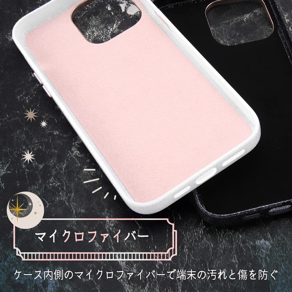 特殊なラメ加工を施したキラキラと綺麗な素材感のケース。サイドボタンやカメラ周りなど統一感のあるメタリックパーツ。内側はやさしく端末を守るマイクロファイバー素材。ラメ塗装ですが表面はツルっとした仕上がりです。メタリックカラーの上に大小ランダムに数色のラメを取り入れてみる角度によって色味、煌めき具合が変わりキラキラと華やかに演出してくれます。