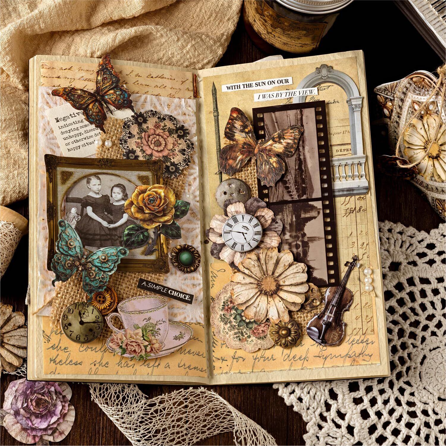 120枚 シール フレークシール コラージュ 素材 ペーパー 素材紙 レースユートピアステッカーヴィンテージ・フローラル・バタフライ・ジュエリー海外韓国 シール帳 ,メモ用紙ノート素材、日記装飾用品 (cuicanliuguangzha) | hananoki
