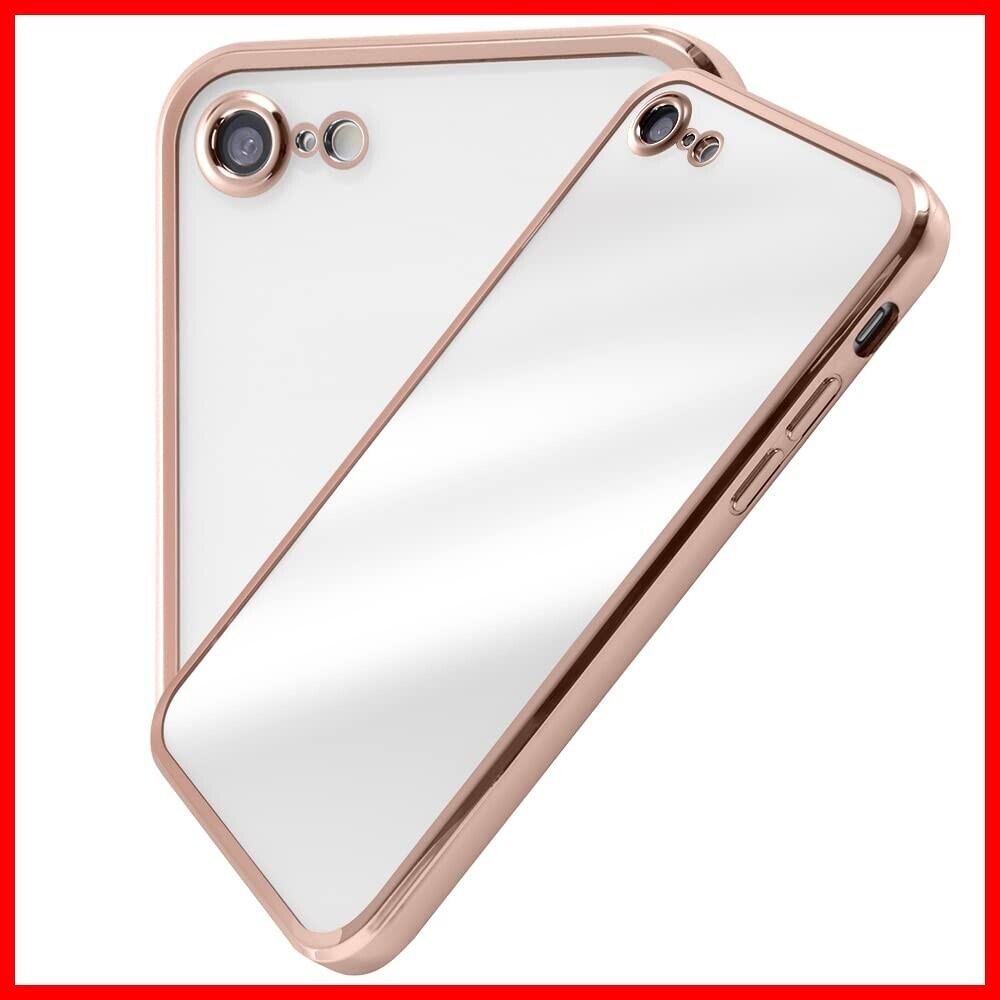 【限定】 iPhone SE3 SE2 クリア ケース カメラ レンズ 周り 保護 耐衝撃 落下防止 ストラップホール付き メタリック バンパー ピンク ゴールド