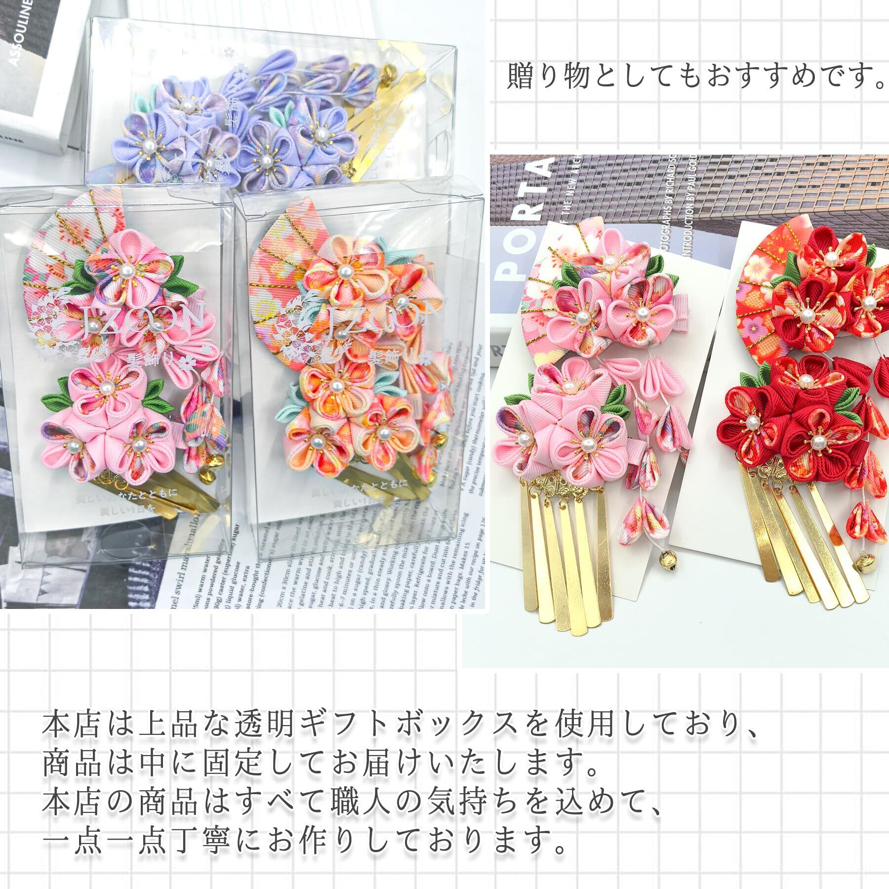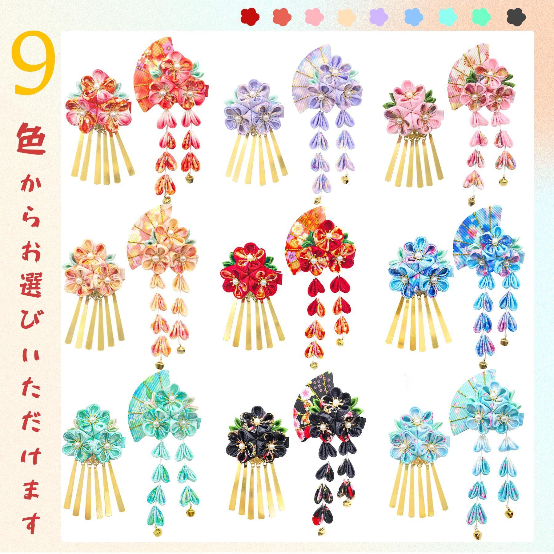 髪飾り 七五三 髪飾り 2点セット つまみ細工 【9色展開】 成人式 浴衣 袴 着物 振袖 和装 花 卒業式 結婚式 鈴付き 子供 手作り H4600