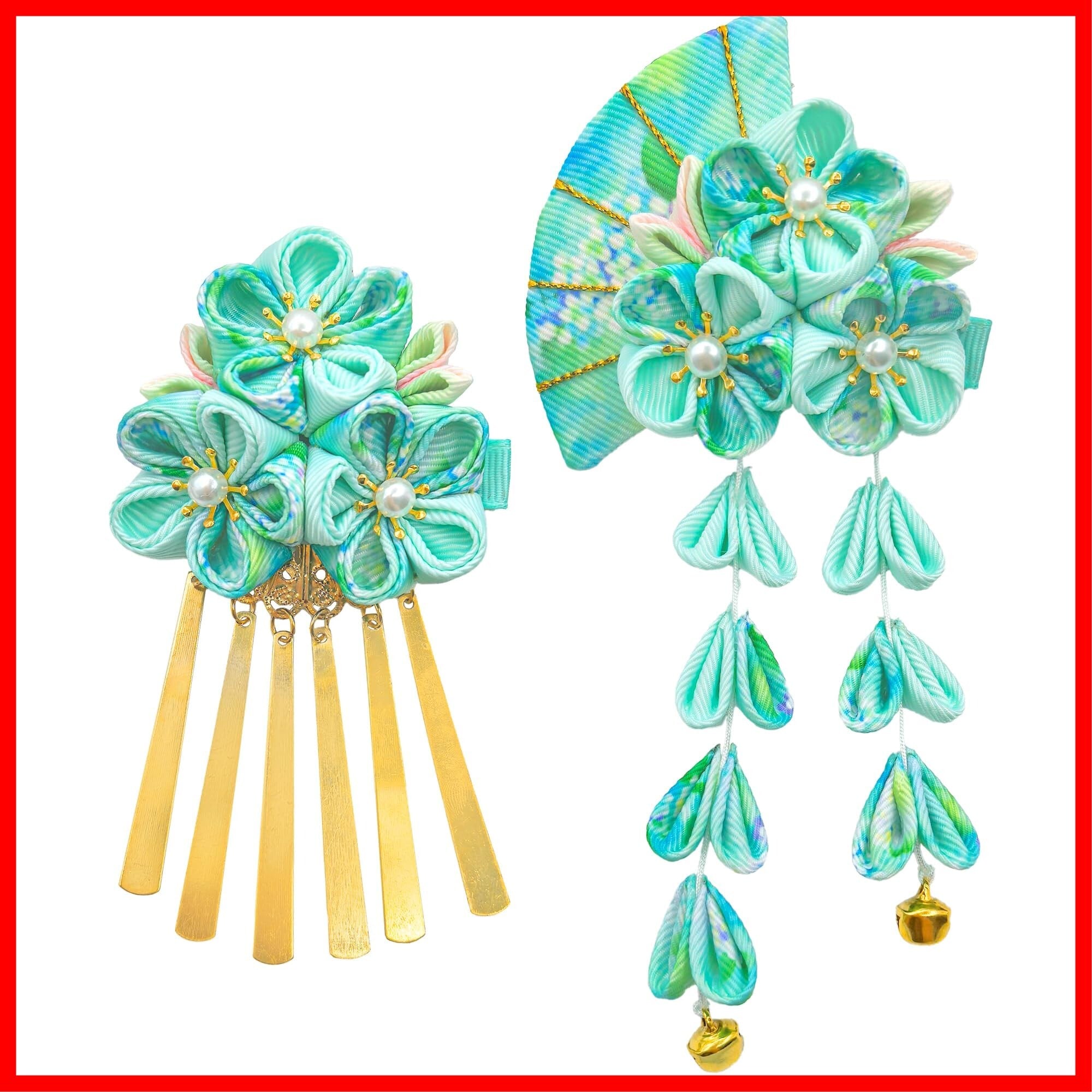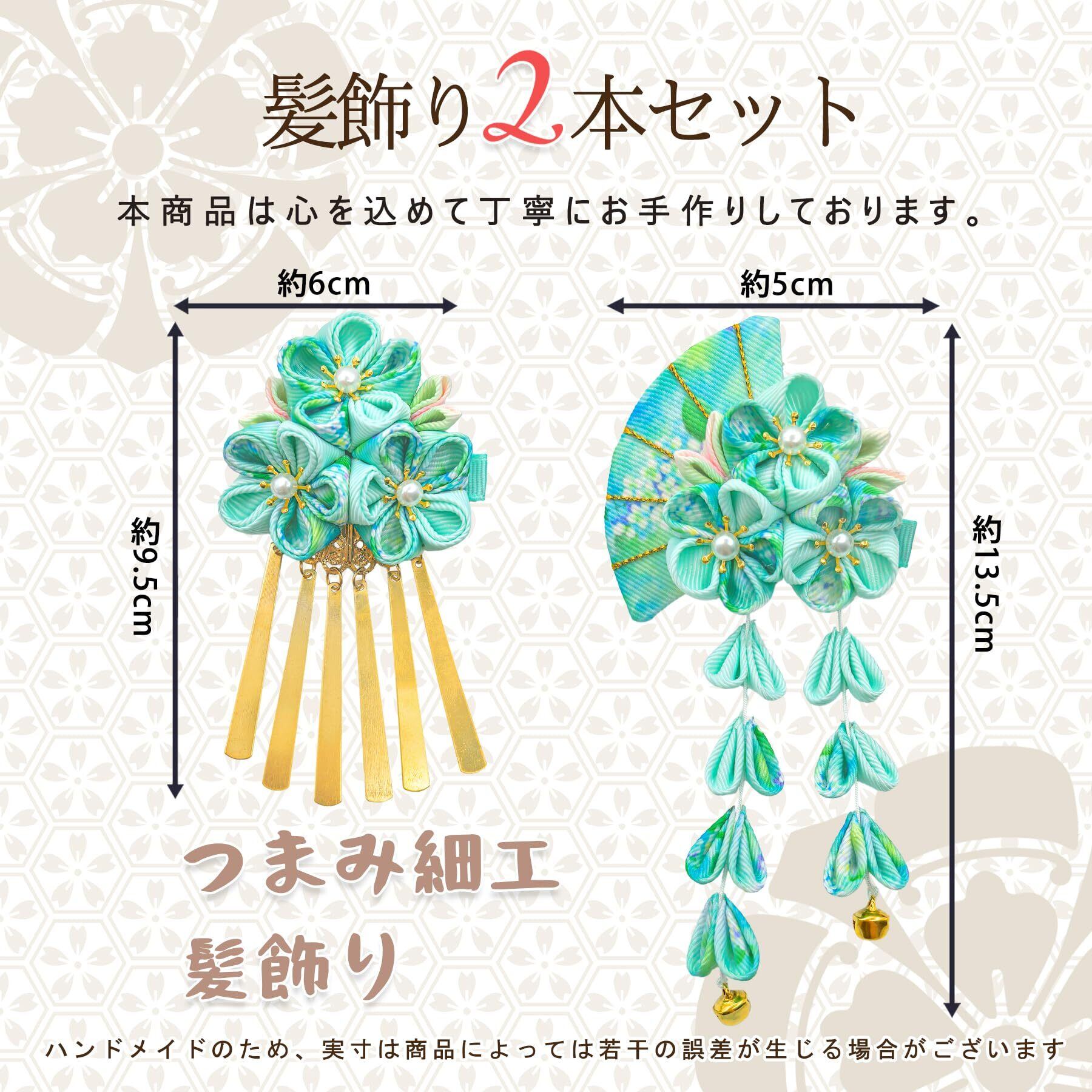 【商品のご説明】ご覧いただきありがとうございます。本品は扇子とお花が組み合わさったつまみ細工2本セットです。和風の扇子に小さなお花が加わり、綺麗で立体感のあるデザインです。金属製のタレ飾りは歩くたびにピカピカと光り、鈴のチリリンの音と共にハレの日に良い気分を与えてくれます。