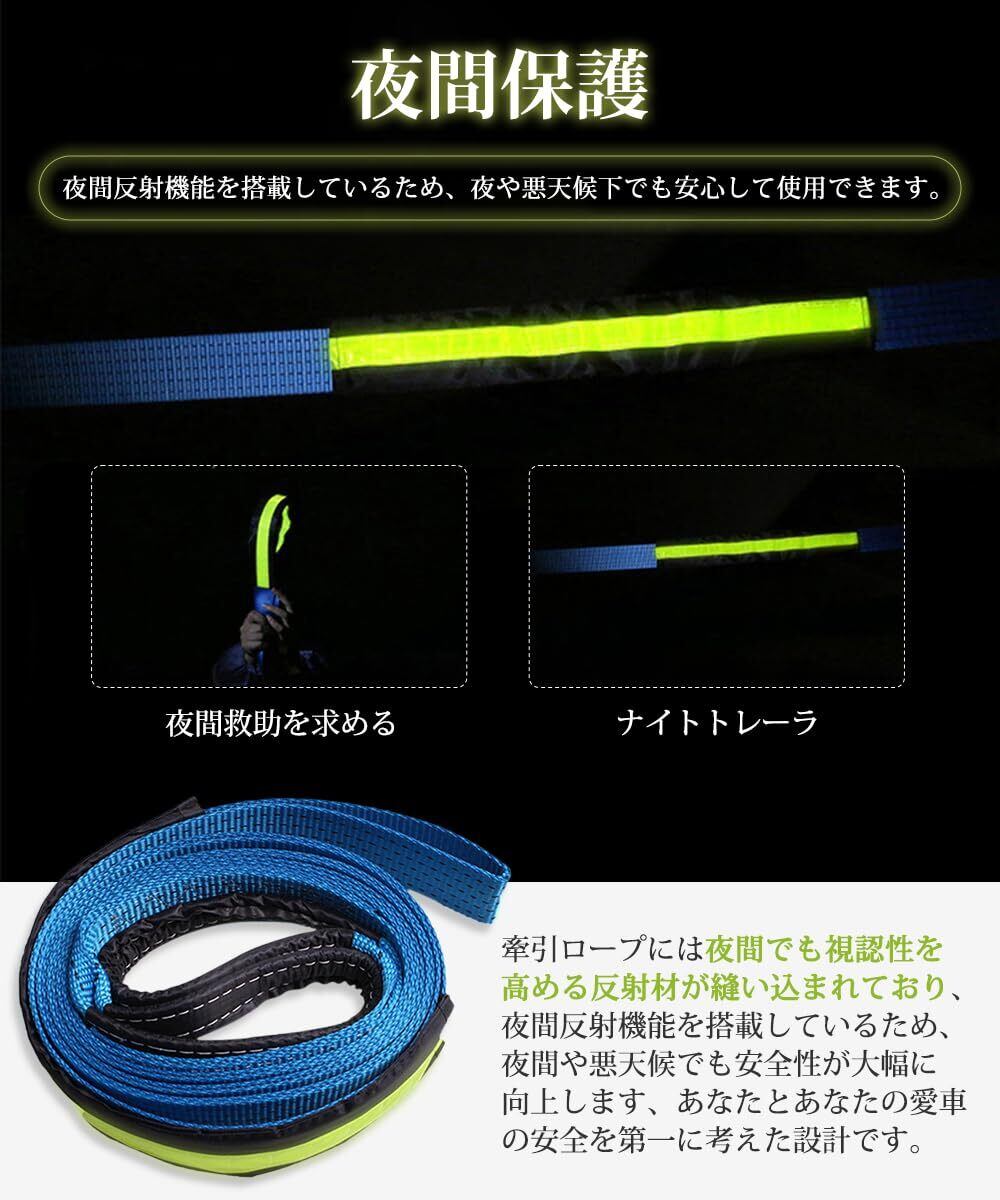 【夜間保護】牽引ロープには夜間でも視認性を高める反射材が縫い込まれており、夜間反射機能を搭載しているため、夜間や悪天候でも安全性が大幅に向上します、あなたとあなたの愛車の安全を第一に考えた設計です。