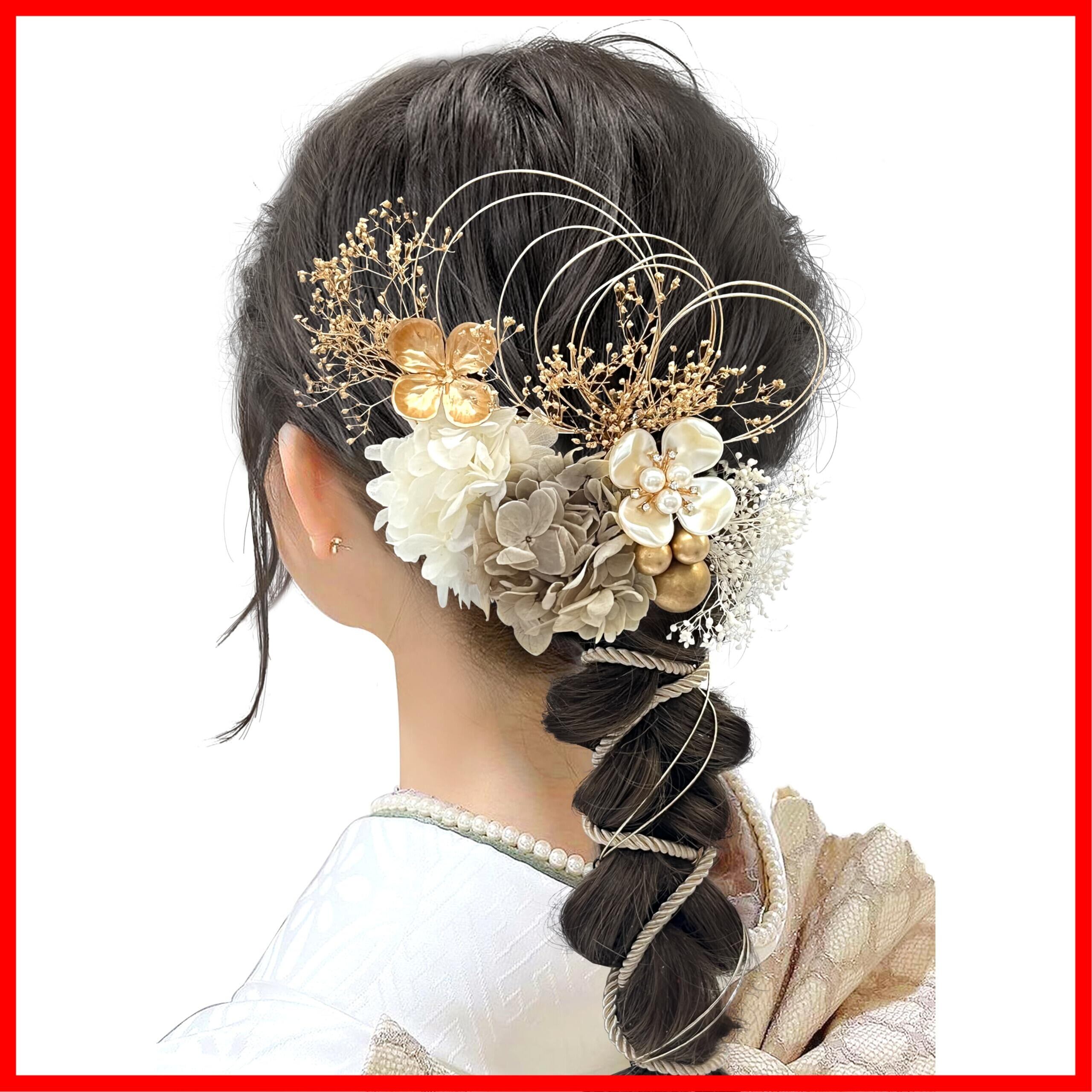 【華麗なデザイン】自然の美しさと華やかさが見事に融合したこの髪飾りセットは、あじさいやかすみ草、水引、パール、そして美しい組紐など、上質な素材を贅沢に使用しています。本物の素材ならではの上品な輝きが特別な日を彩り、優雅で洗練された雰囲気を演出します。人生の節目となるイベントや、思い出に残るひとときを、さらに魅力的に仕上げてくれる一品です。