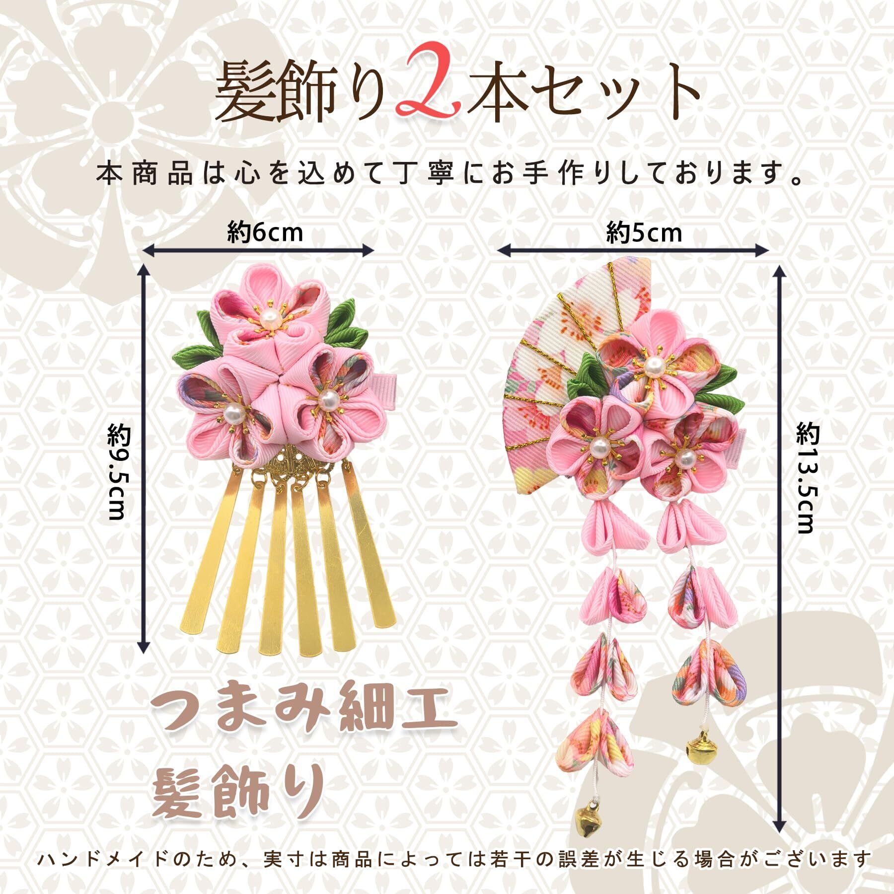 髪飾り 七五三 髪飾り 2点セット つまみ細工 【9色展開】 成人式 浴衣 袴 着物 振袖 和装 花 卒業式 結婚式 鈴付き 子供 手作り H4600