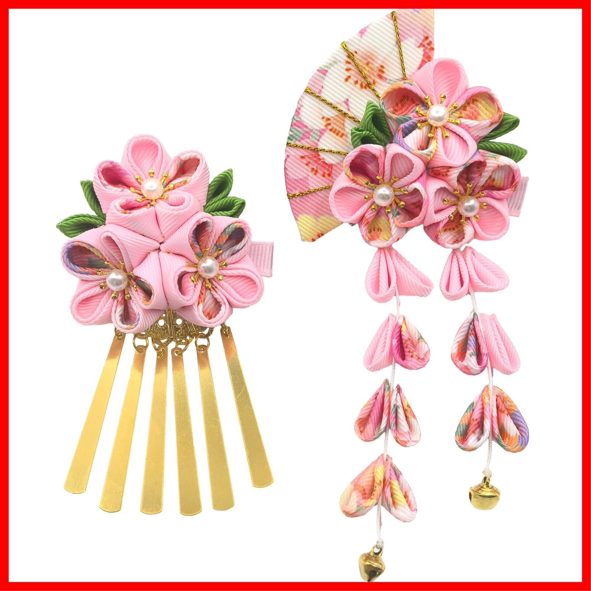【商品のご説明】ご覧いただきありがとうございます。本品は扇子とお花が組み合わさったつまみ細工2本セットです。和風の扇子に小さなお花が加わり、綺麗で立体感のあるデザインです。金属製のタレ飾りは歩くたびにピカピカと光り、鈴のチリリンの音と共にハレの日に良い気分を与えてくれます。