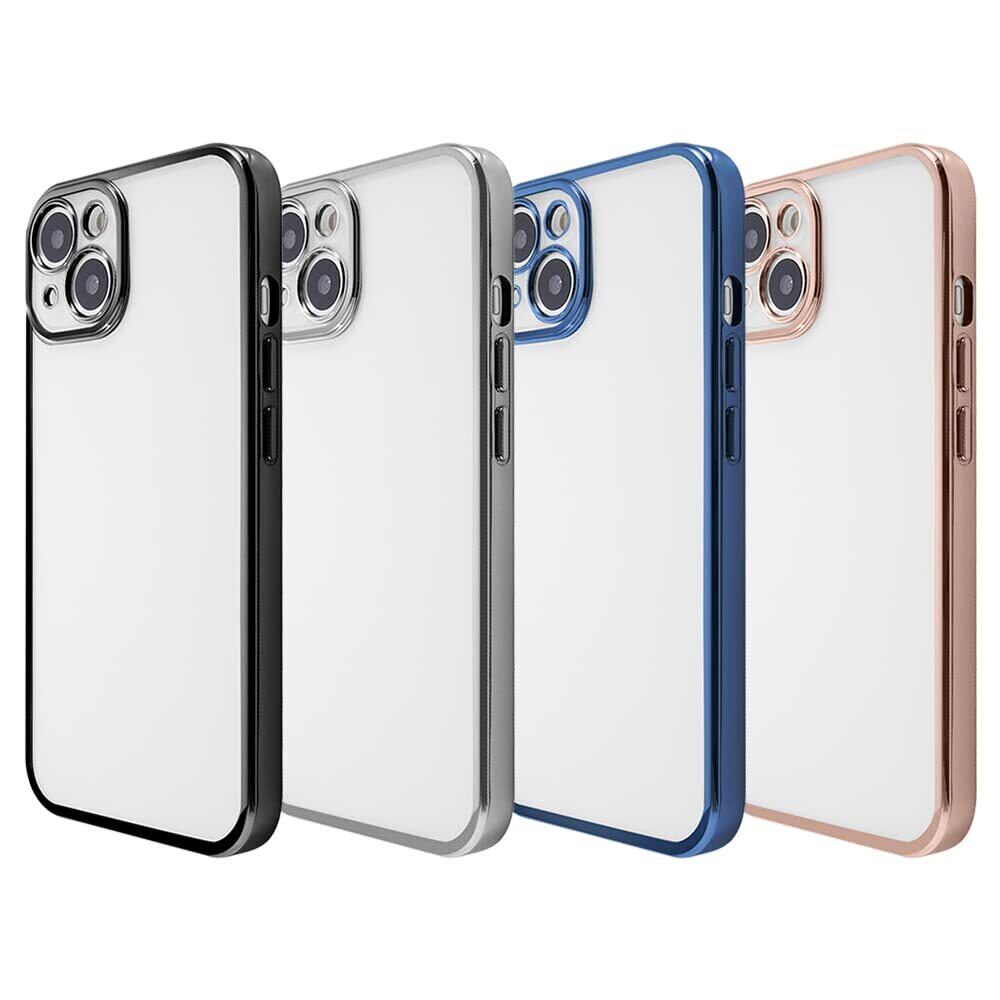 【限定】 iPhone13 クリア ケース カメラ レンズ 周り 保護 耐衝撃 落下防止 ストラップホール付き メタリック バンパー ブラック