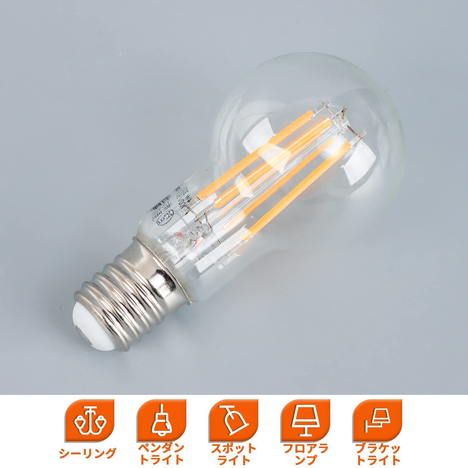 【レトロな雰囲気】色温度が3000Kです。レトロ感があって温かい光を拡散します。フィラメント電球は演色性も増して、雰囲気を壊さません。美しい色合いが演出できます。演色指数(CRI):>Ra80、物の本当の色を復元し、色がより自然に見えます。