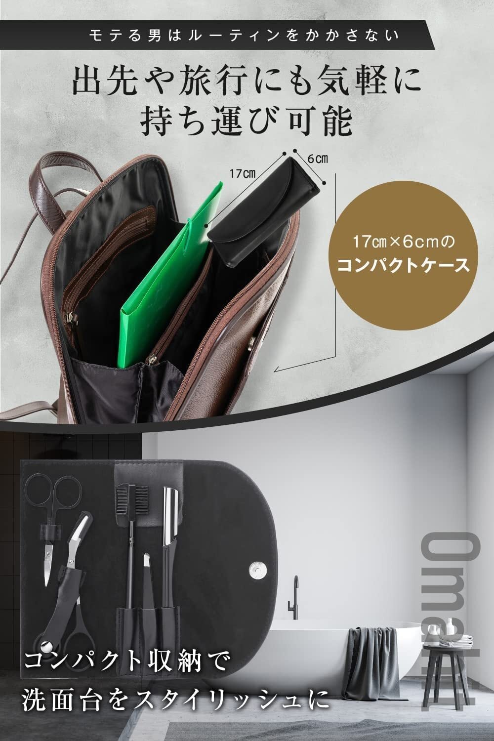 【出先や旅行にも気軽に持ち運び可能】17cm×6cmのコンパクトケースに収納。洗面台をスタイリッシュに。
