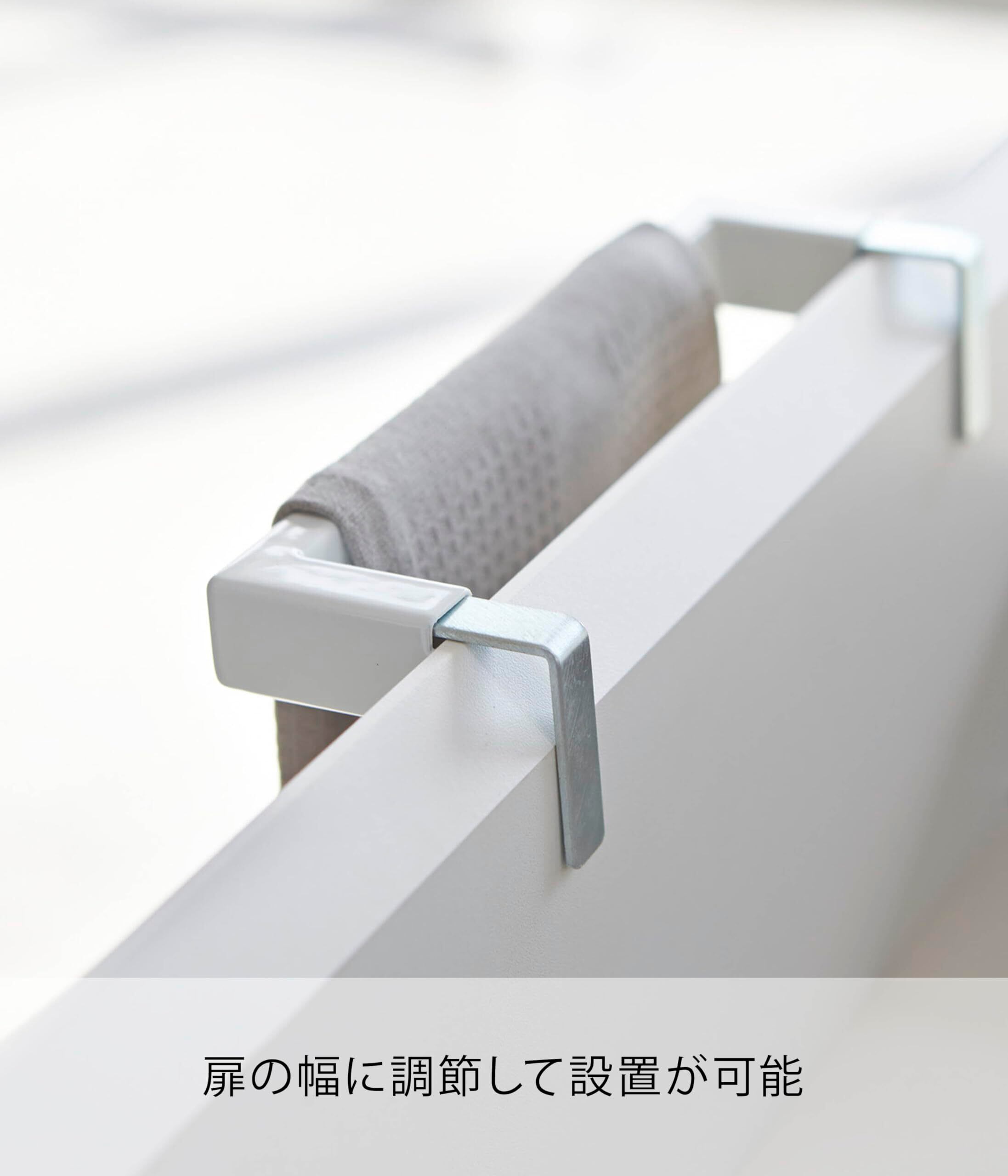 扉の厚みにぴったり調節できるスタイリッシュなタオルハンガー