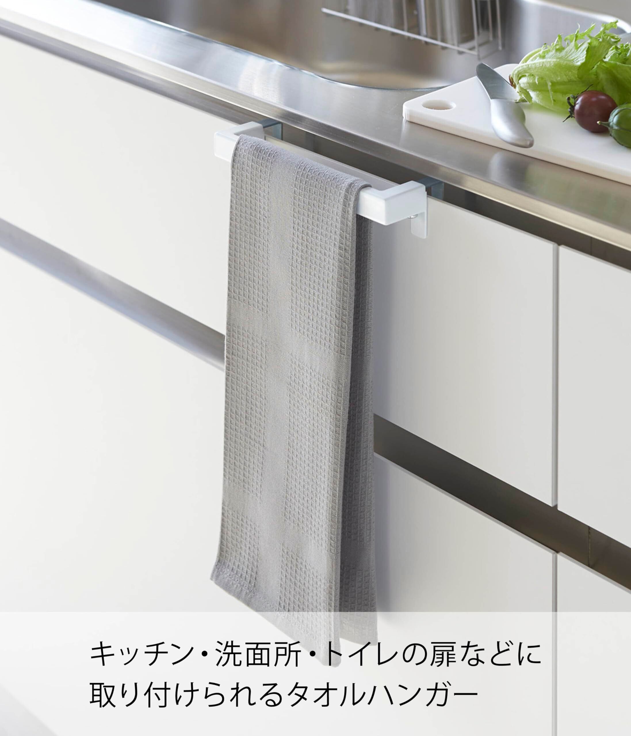 キッチン・洗面所・トイレの扉などにシンプルでスタイリッシュなデザインのタオル掛け