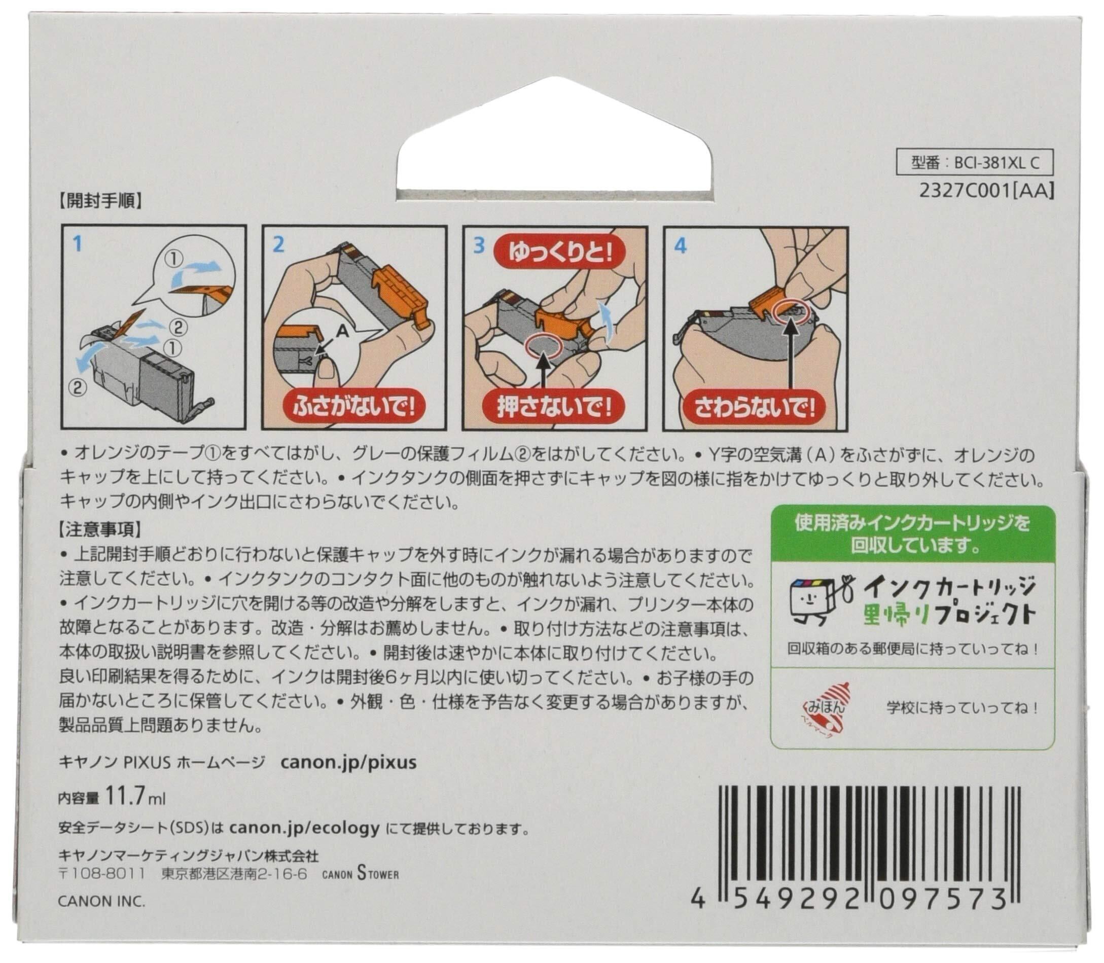 Canon 純正インクカートリッジ BCI-381XLC 対応プリンター:PIXUS TS8230, PIXUS TS6230, PIXUS TS8130, PIXUS TS6130, TS9530, PIXUS TR8530, PIXUS TR7530