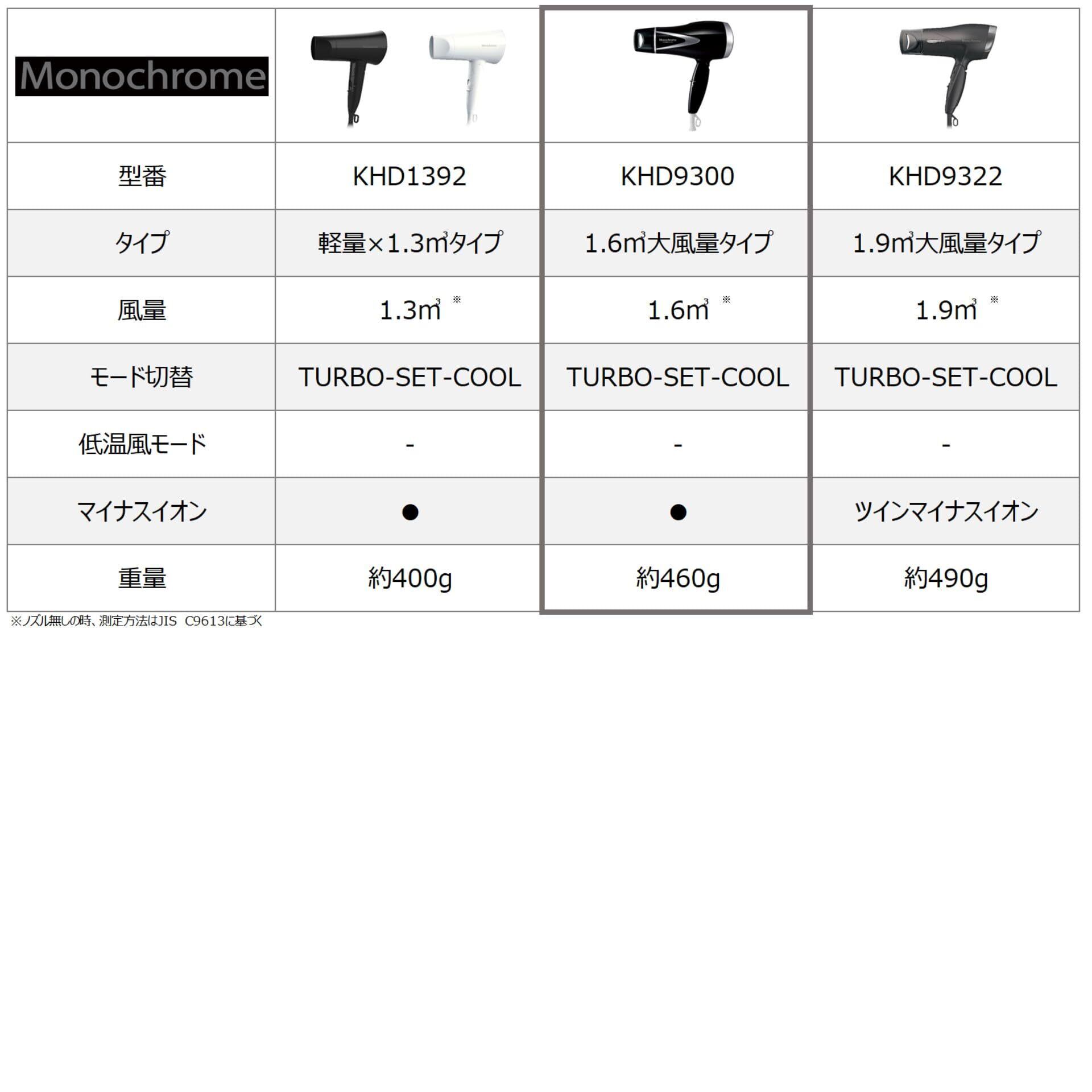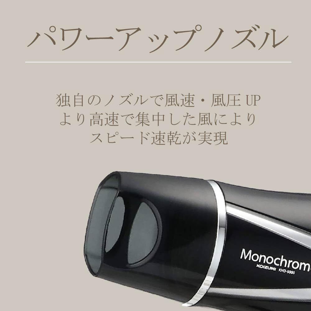 モノクローム(Monochrome) コイズミ ヘアドライヤー マイナスイオン 軽量タイプ ブラック KHD-9300/BK モノクローム