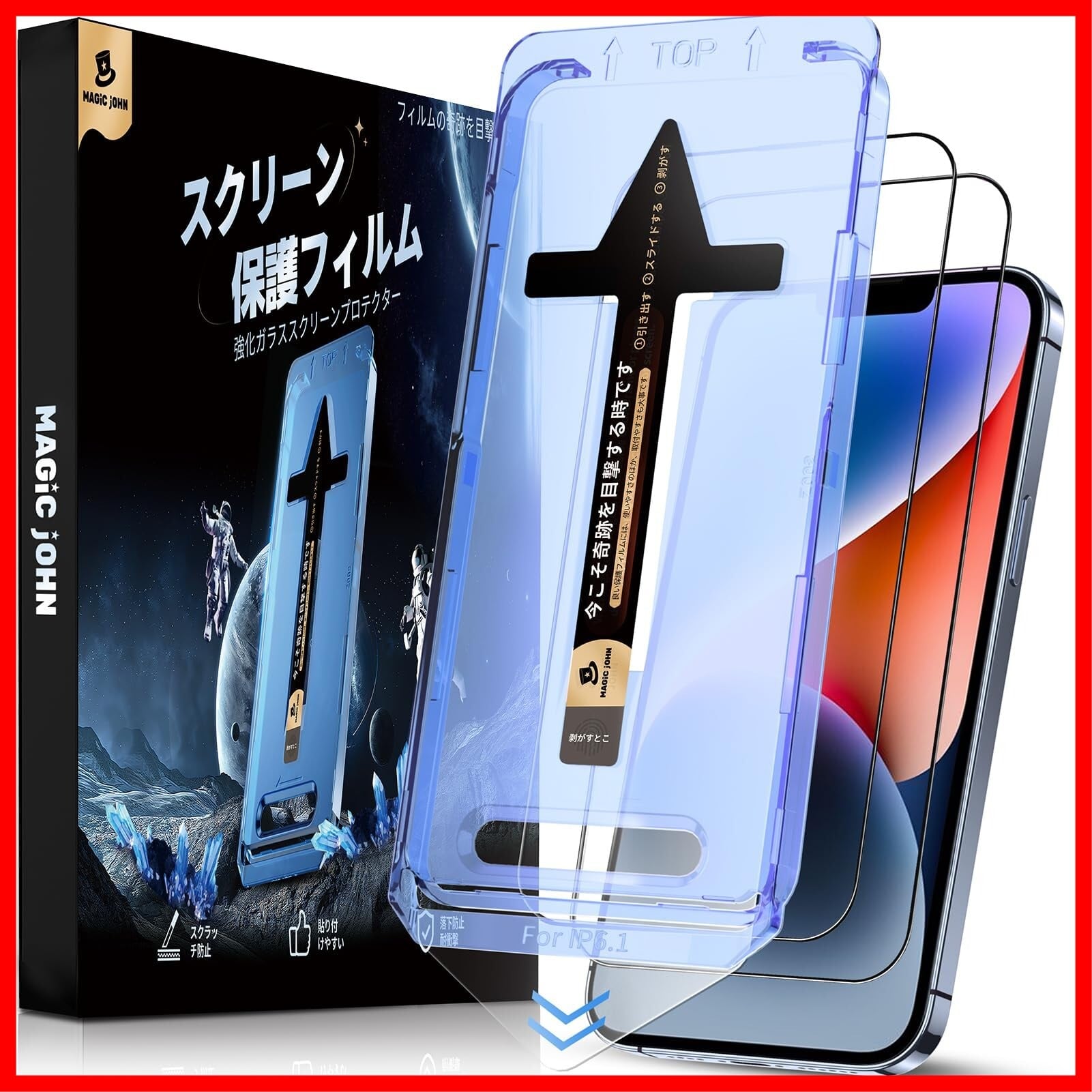 【光沢】 MAGIC JOHN マジックジョン iPhone 14/13/13Pro 用 ガラスフィルム 2枚セット ガイド枠付き 貼りやすい ズレなく 気泡レス 9H硬度 強化フィルム 飛散防止 指紋防止 スクラッチ防止