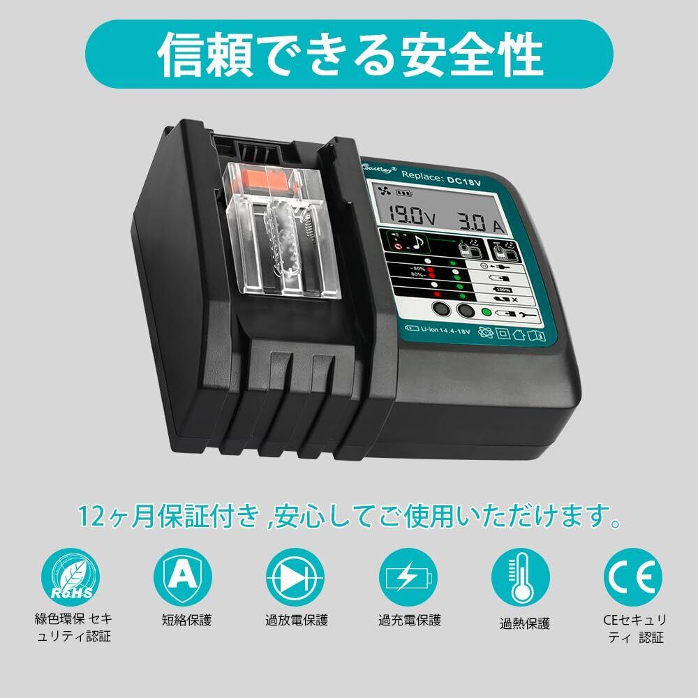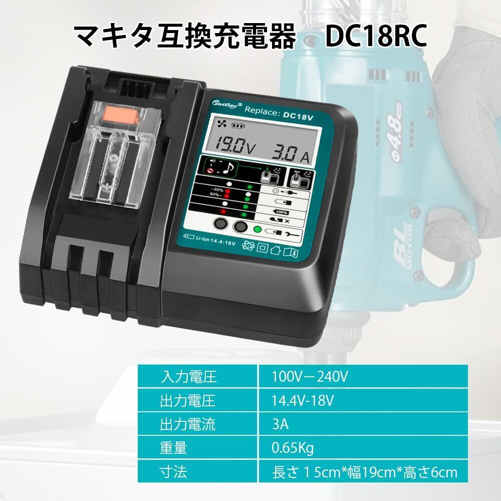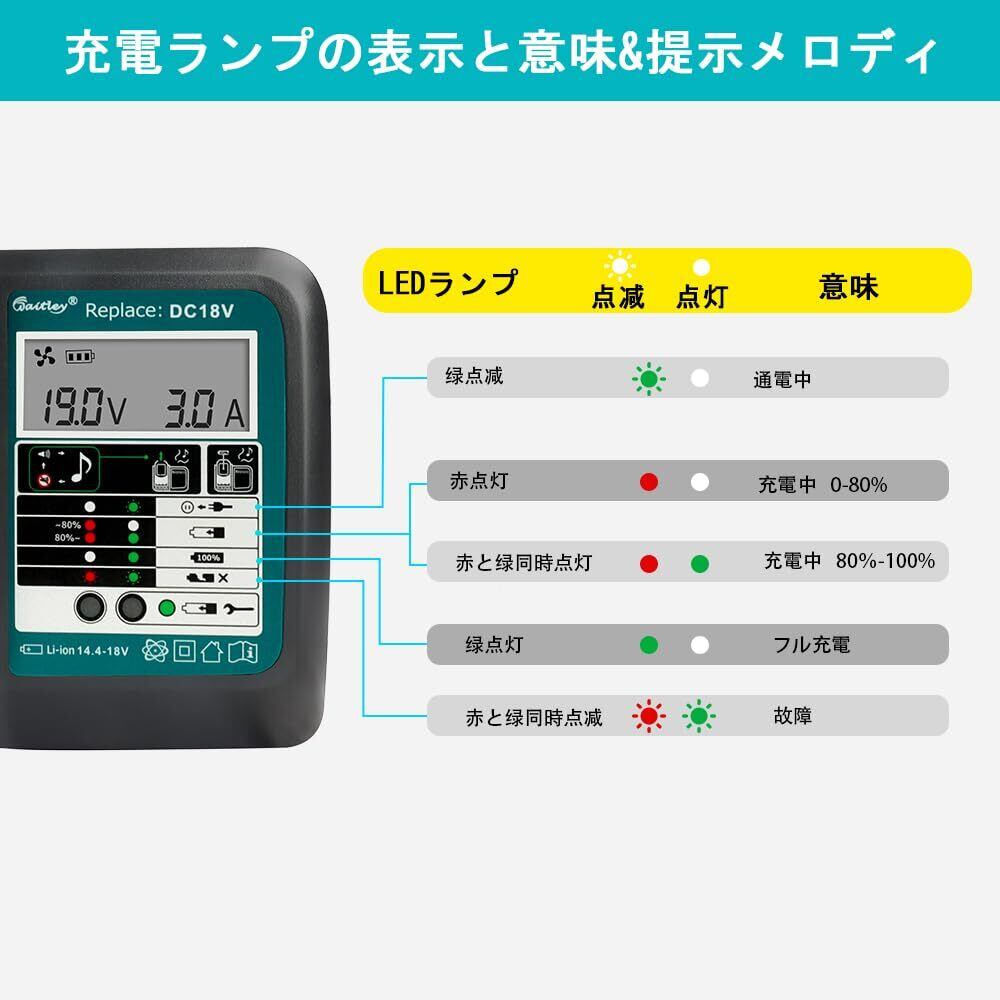WaitleyマキタDC18RC充電器 互換 マキタ18V /14.4Vバッテリー充電器 冷却ファン付き 液晶パネル付き 充電開始/完了メロディ付 マキタ18V バッテリー充電器 対応 BL1460 BL1430 BL1860 1830など充電可能 【バッテリー別売】
