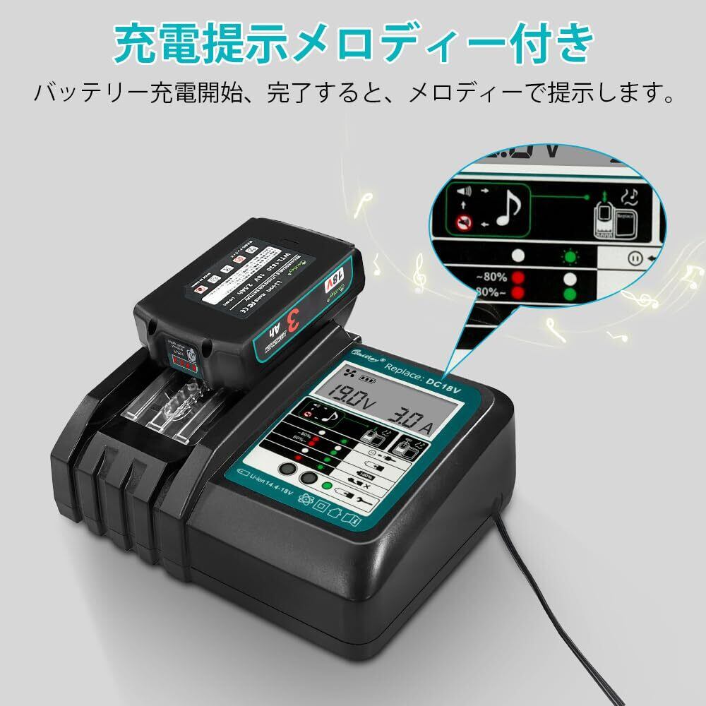 WaitleyマキタDC18RC充電器 互換 マキタ18V /14.4Vバッテリー充電器 冷却ファン付き 液晶パネル付き 充電開始/完了メロディ付 マキタ18V バッテリー充電器 対応 BL1460 BL1430 BL1860 1830など充電可能 【バッテリー別売】 | hananoki