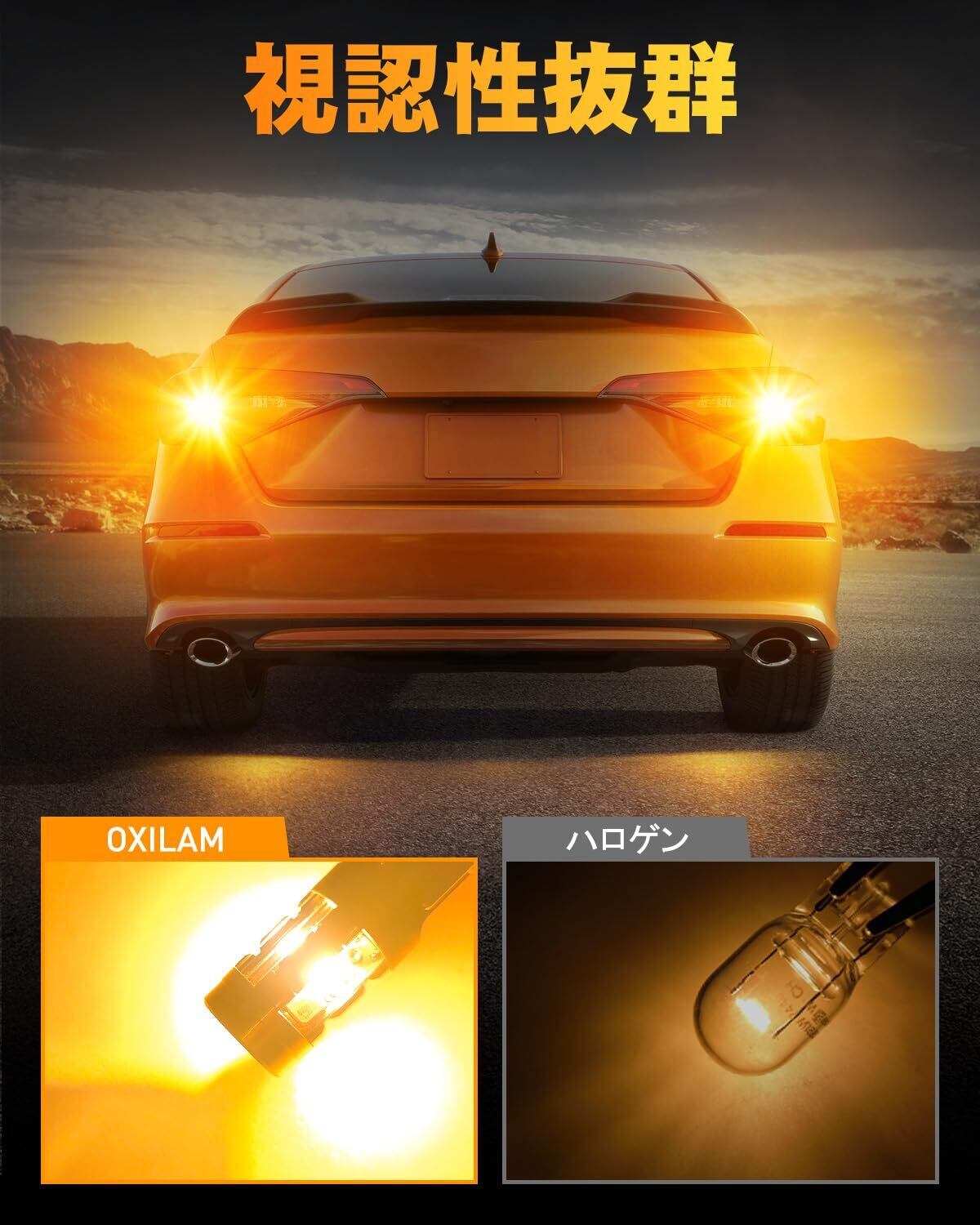 【高輝度】OXILAM T20 LEDバルブは、純正アンバー色で、ヘッドライトによく採用した1860 LEDチップを4連搭載。光がワイドに広がり路面までしっかり照射するため、優れ日中でもウインカーランプをしっかりと視認できます。安全性が大幅に向上します。