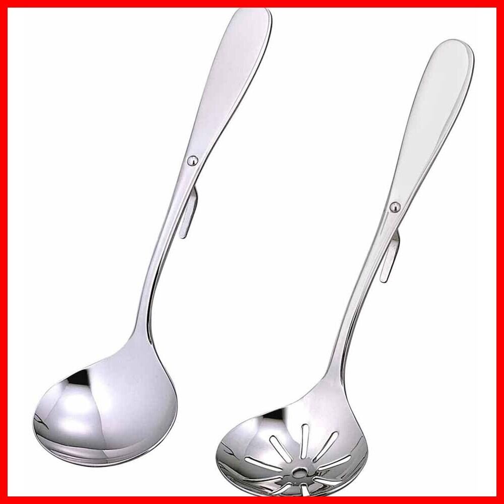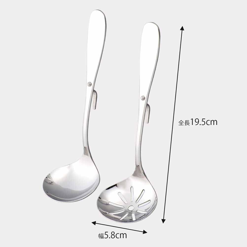 下村企販 おたま 2本 セット 鍋用 【日本製】 食洗機対応 盛り付けにぴったり フック付き 穴あき 具だけすくえる 全長19.5cm 卓上 食卓 惣菜 小分け お玉 ステンレス 燕三条 19461 | hananoki