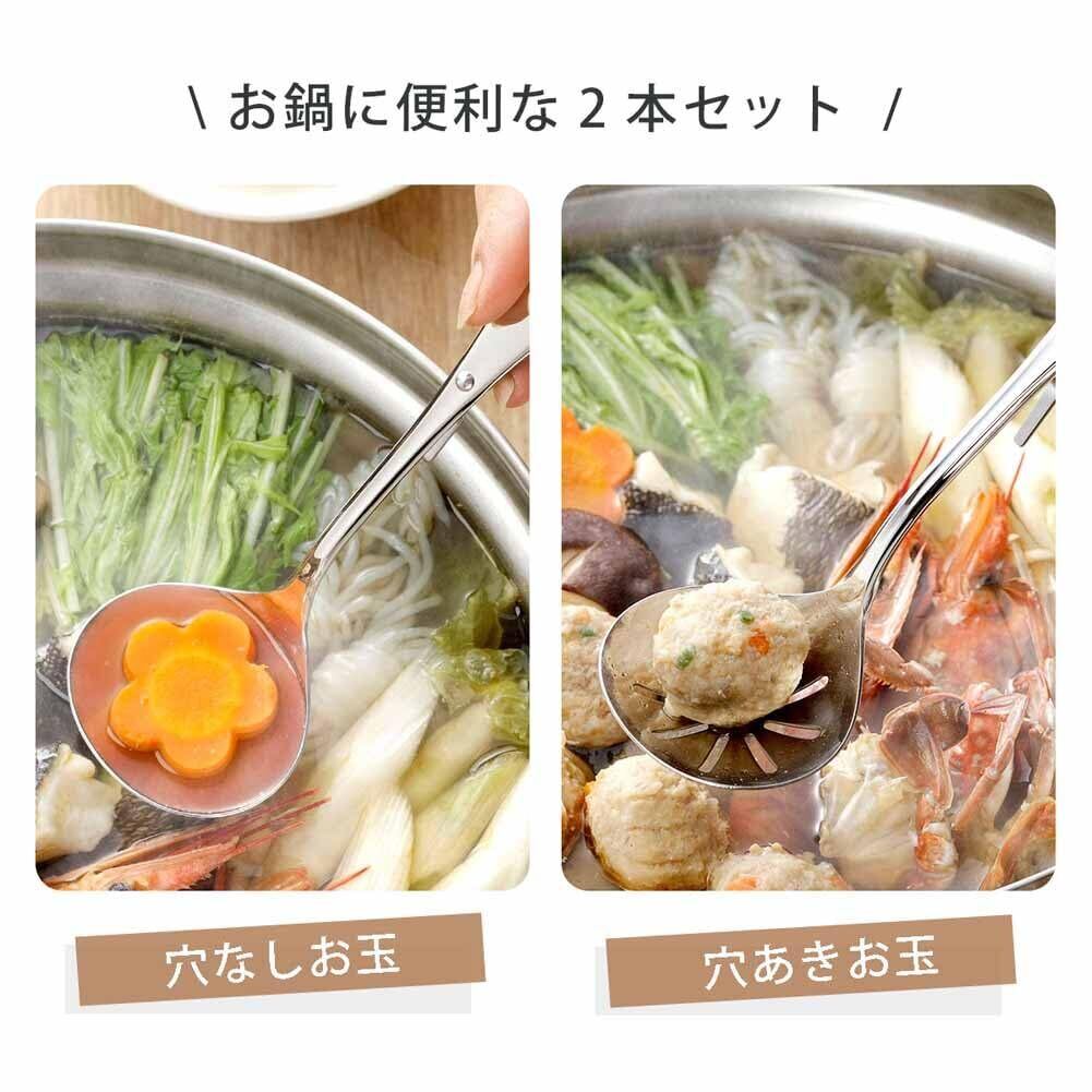 ●鍋物の必需品で汁物にお玉、具だけの時は穴あきお玉と使い分け