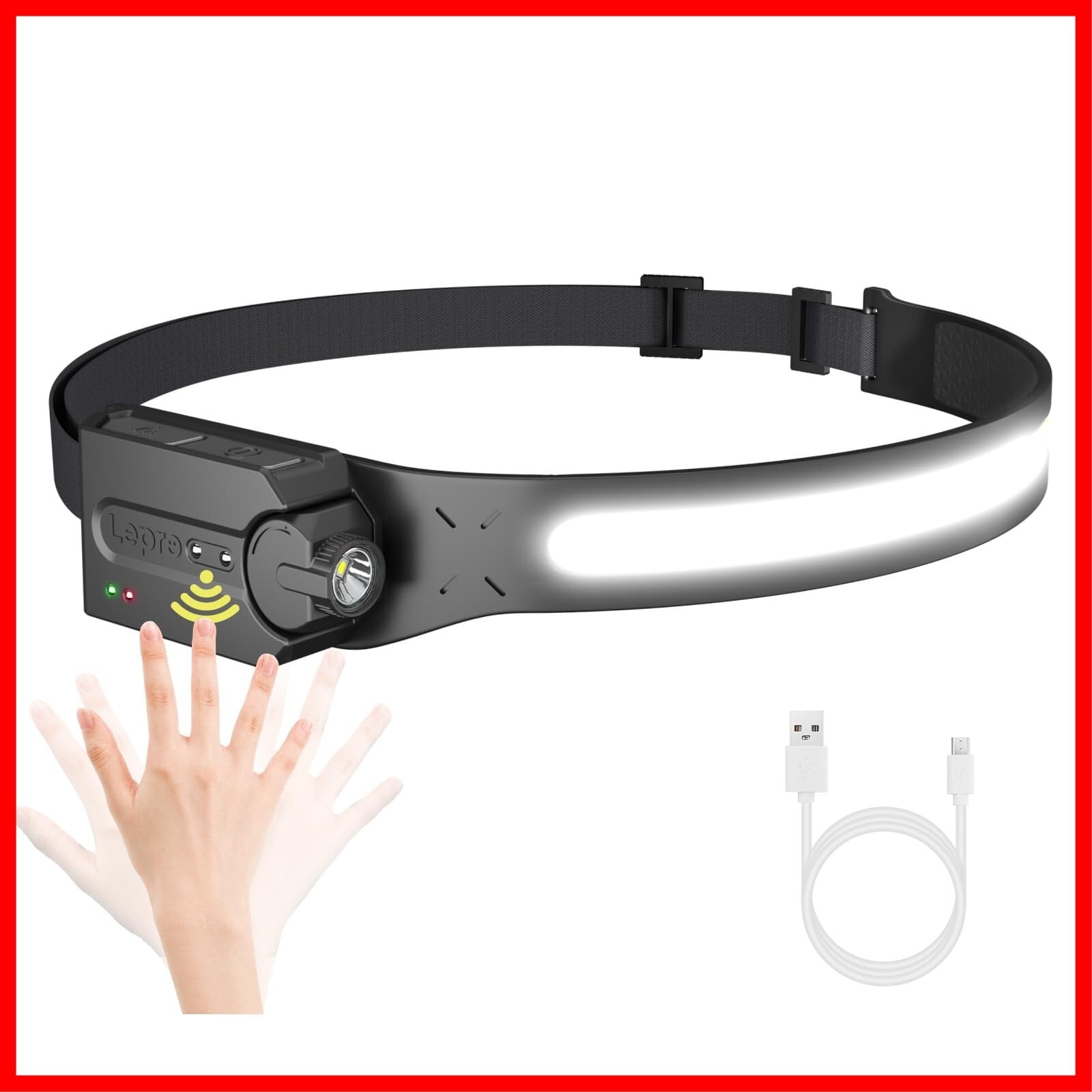 Lepro へッドライト 充電式 へッドランプ led 高輝度 230°COB広角照明 角度調整可 センサー付き 5つ点灯モード 防水 軽量 ledへッ ドライト キャンプ ランニング | hananoki