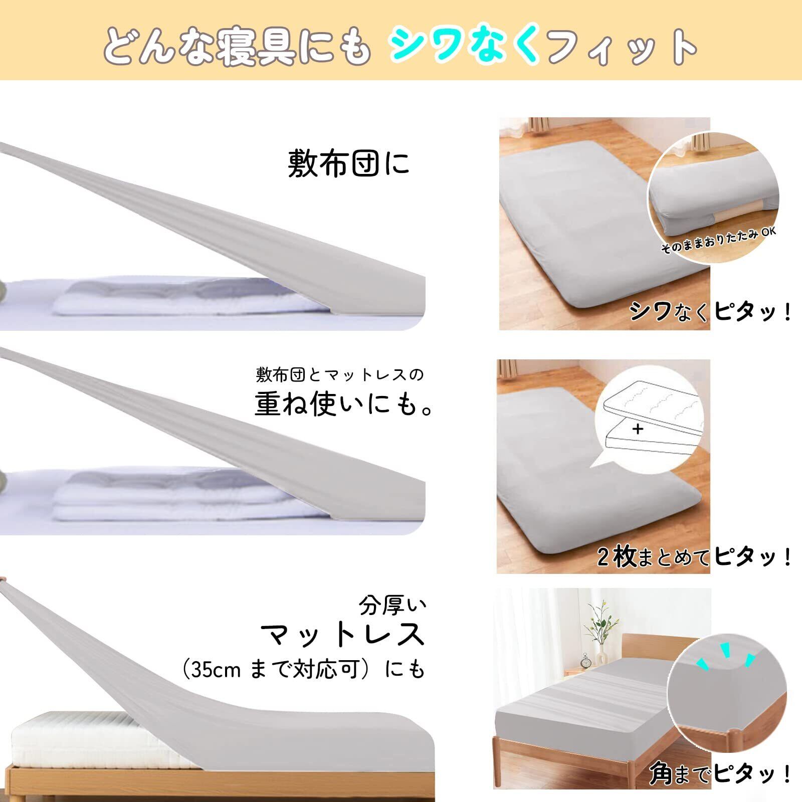 【伸縮性抜群・適用幅広い】『3Dストレッチ』特性を持ち、タテにもヨコにも伸びるので、マット適用サイズ幅広いです。アイロンせずシワ一つもない、きれいなベッドに変身できるボックスシーツです。